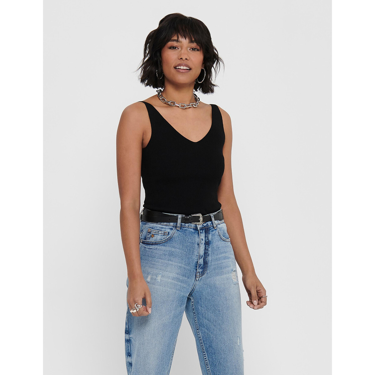 Αμάνικο πλεκτό με V - JDY