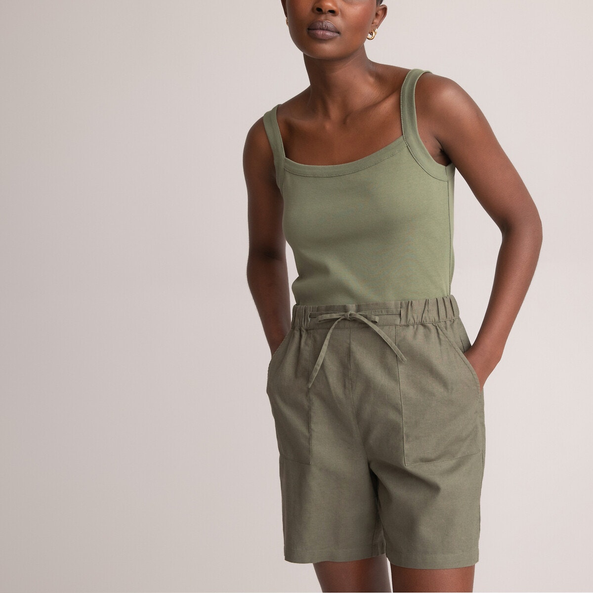 Φανελάκι με στρογγυλή λαιμόκοψη. Ένα ρούχο που πρέπει να έχετε, για να το ταιριάξετε με κάθε σύνολο. Φαρδιές τιράνες με ραβδώσεις.
