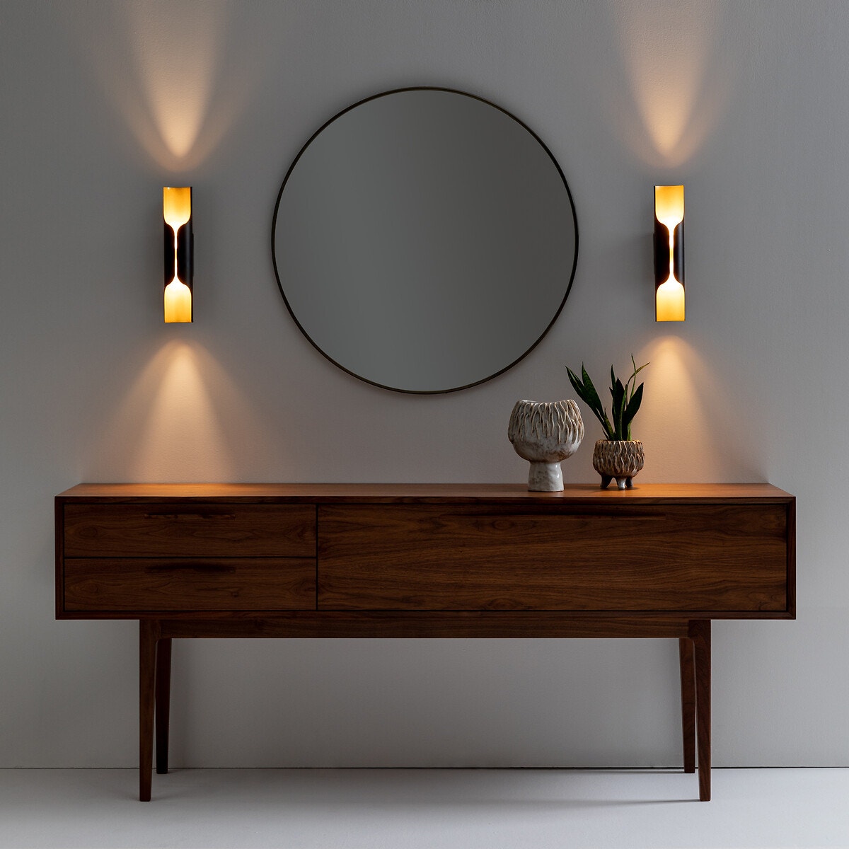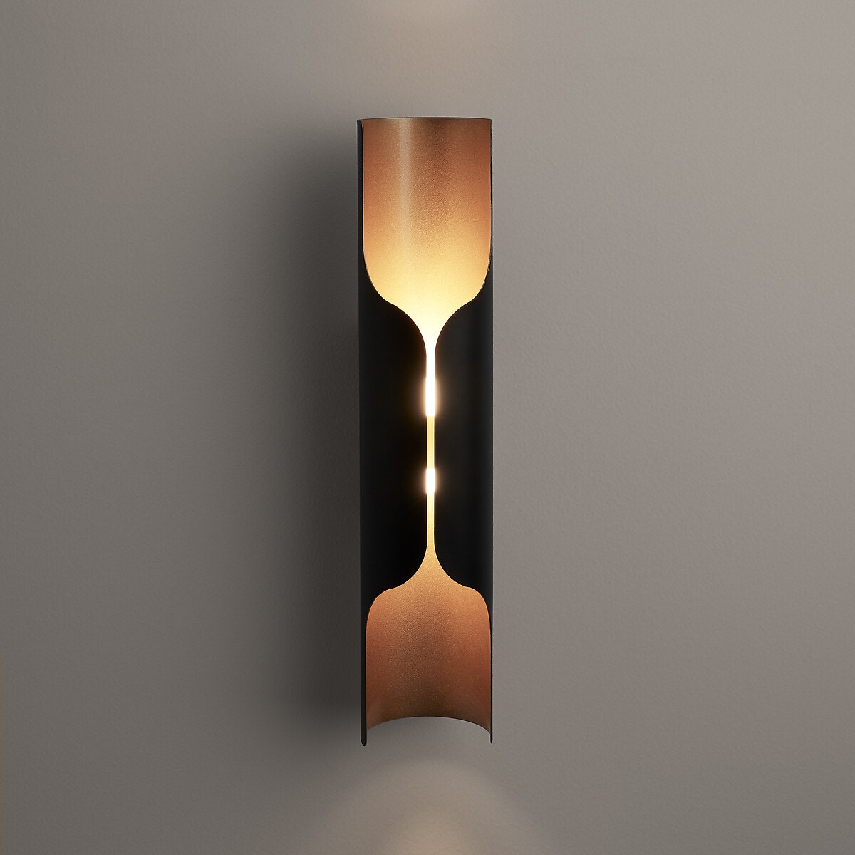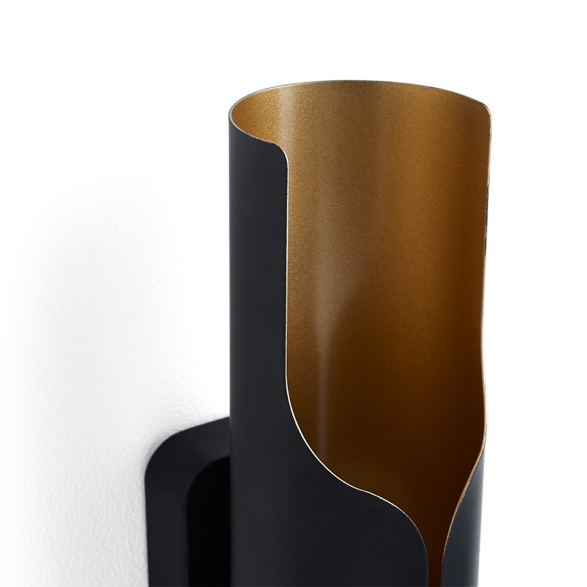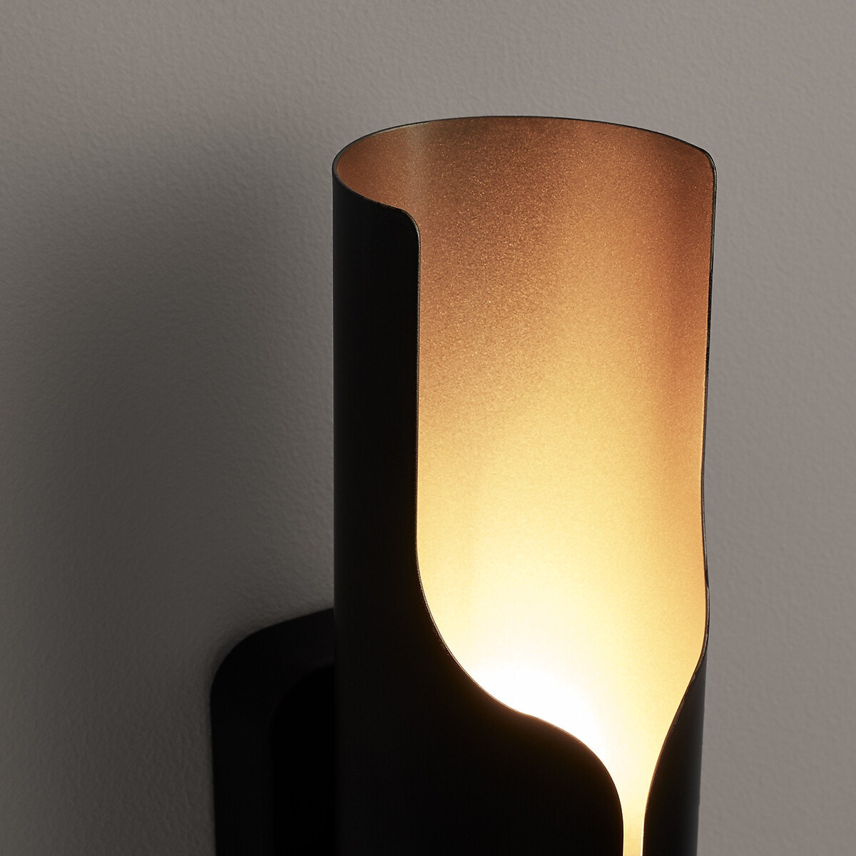 Η απλίκα Henrio με το κυλινδρικό σχήμα της που θυμίζει φλάουτο παραπέμπει στους κώδικες του ντιζάιν της δεκαετίας του 70. Το πάνω μέρος διαχέει ένα διακριτικό φως, που αντανακλάται στη βάση χάρη στο χρυσαφί φινίρισμα.