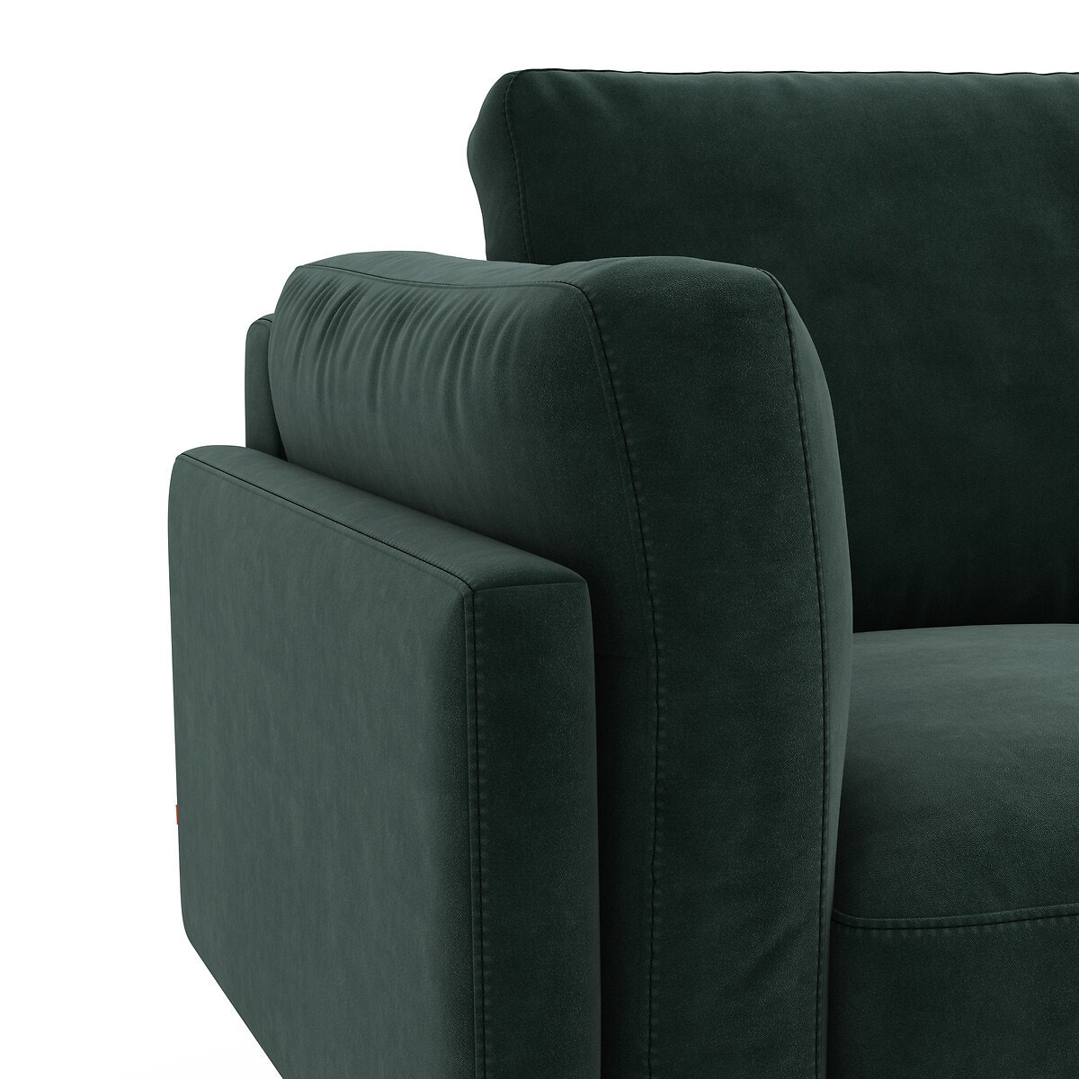 Το μαξιλάρι του τοποθετείται όμορφα στο μπράτσο και έχει πλούσιο γέμισμα για μοναδική αίσθηση άνεσης. Οι όμορφες διαστάσεις και η ανάλαφρη και λιτή αισθητική τονίζονται από τα μικρά πόδια στα πλάγια που προσδίδουν την αίσθηση ότι ο καναπές αιωρείται στον αέρα.