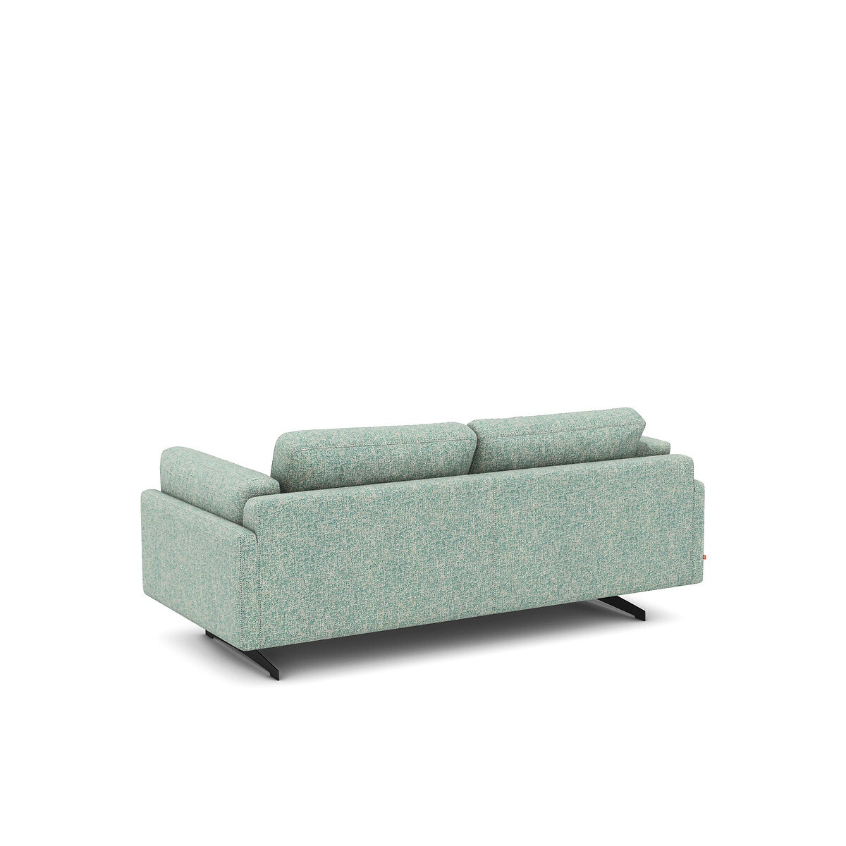 Το μαξιλάρι του τοποθετείται όμορφα στο μπράτσο και έχει πλούσιο γέμισμα για μοναδική αίσθηση άνεσης. Οι όμορφες διαστάσεις και η ανάλαφρη και λιτή αισθητική τονίζονται από τα μικρά πόδια στα πλάγια που δίνουν την αίσθηση ότι ο καναπές αιωρείται. Κατασκευάζεται στην Ιταλία.