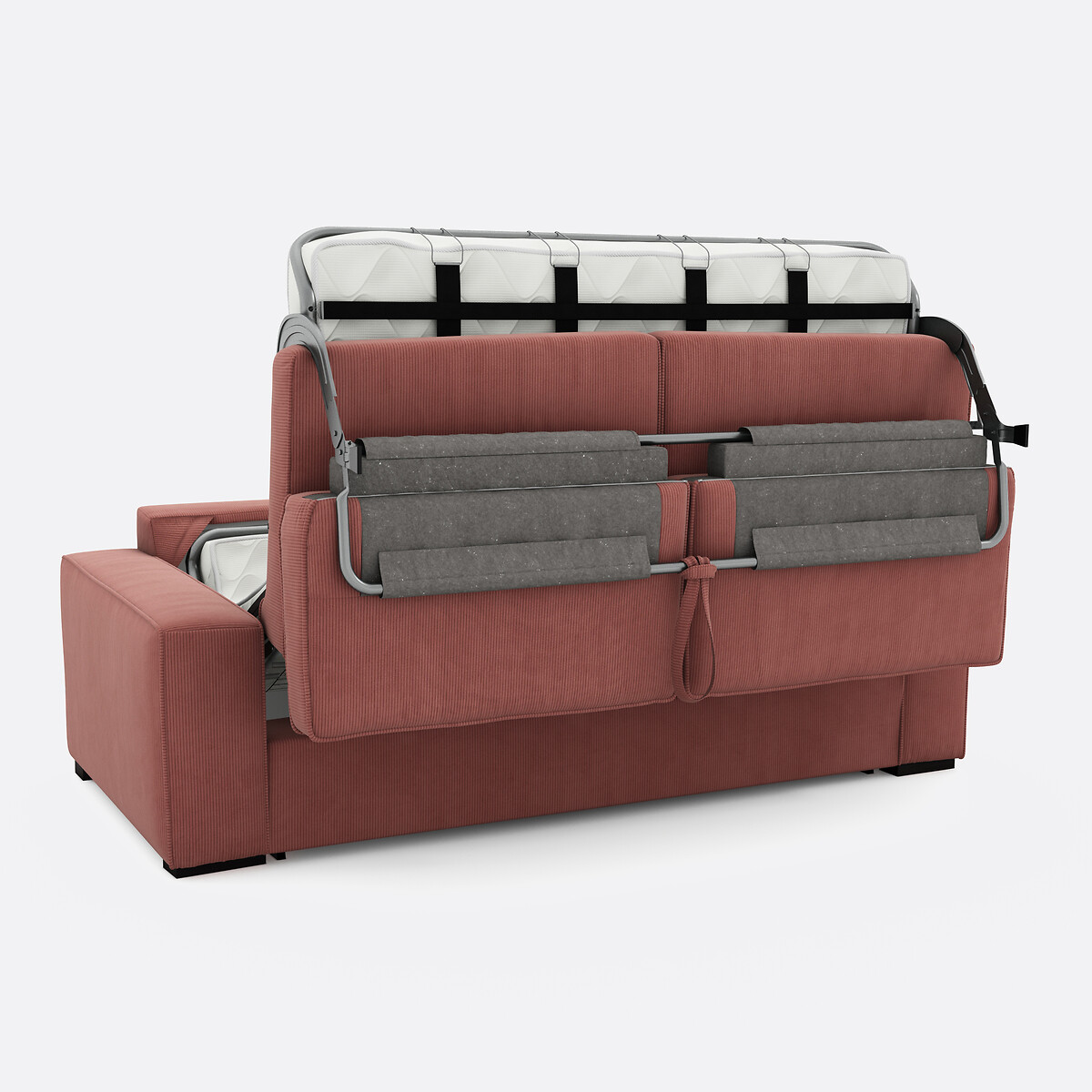 Χάρη στο σύστημα γρήγορης μετατροπής σε κρεβάτι, ο καναπές-κλινής ξεδιπλώνεται με μία κίνηση (με τη βοήθεια μιας μικρής λαβής πίσω από τα μαξιλάρια της πλάτης), χωρίς κόπο και χωρίς να αφαιρούνται τα μαξιλάρια.