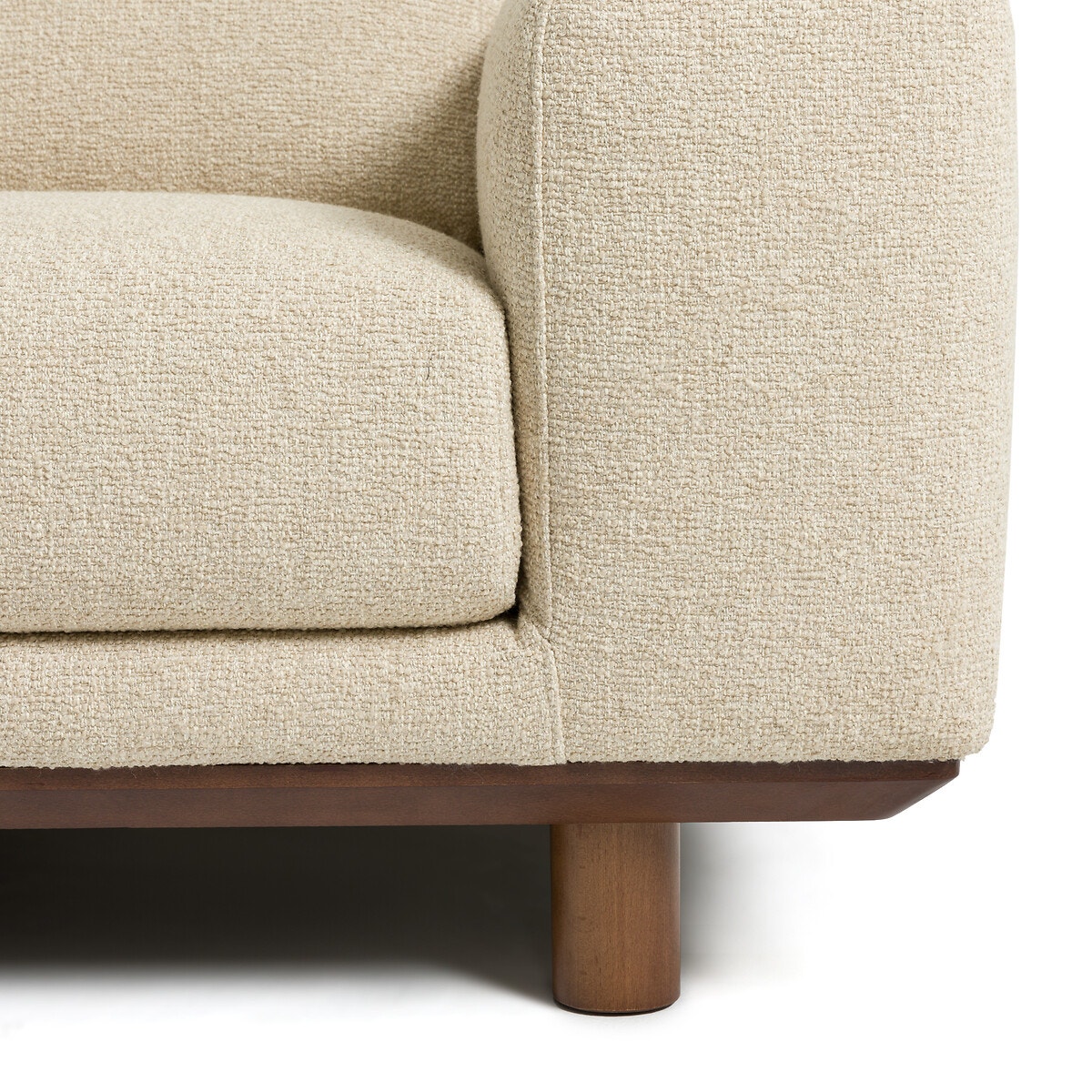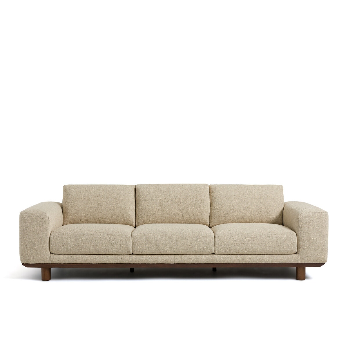 Με μεγάλα μπράτσα και πλούσιες διαστάσεις, αυτός ο καναπές της συλλογής Cerea αποδίδει φόρο τιμής στην απλότητα και το λιτό ντιζάιν. Η ιδιαιτερότητά του: ελαφρώς υπερυψωμένος από το δάπεδο με μια ξύλινη βάση με πλαγιοτομή και πόδια σε σχήμα μισοφέγγαρου.