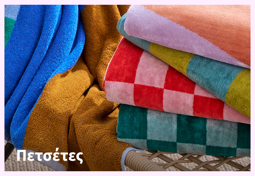 Δημιούργησε αισθητική καλοκαιρινού spa στο μπάνιο σου με απαλές πετσέτες, αέρινα μπουρνούζια, γάντια μπάνιου και ολοκλήρωσέ το με απορροφητικά χαλάκια και μοντέρνες κουρτίνες. Απόλαυσε την καθημερινότητα με άνεση, δροσιά και οικονομία.