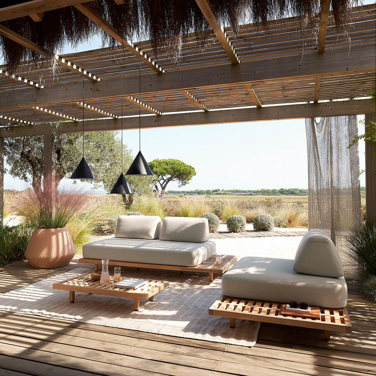 Πολυμορφικά, τα έπιπλα της σειράς Joeco προσφέρουν πολλές επιλογές διαμόρφωσης για τον κήπο: γωνιακός καναπές, ανάκλιντρο ή σαλόνι lounge. Στο ίδιο ύψος, το χαμηλό τραπεζάκι και οι καναπέδες δημιουργούν ένα ενιαίο σύνολο ιδανικό για στιγμές χαλάρωσης. Διαχρονικό ντιζάιν: πόδια και τραβέρσες με τετράγωνη διατομή, κομψές γραμμές, τριγωνικά μαξιλάρια...