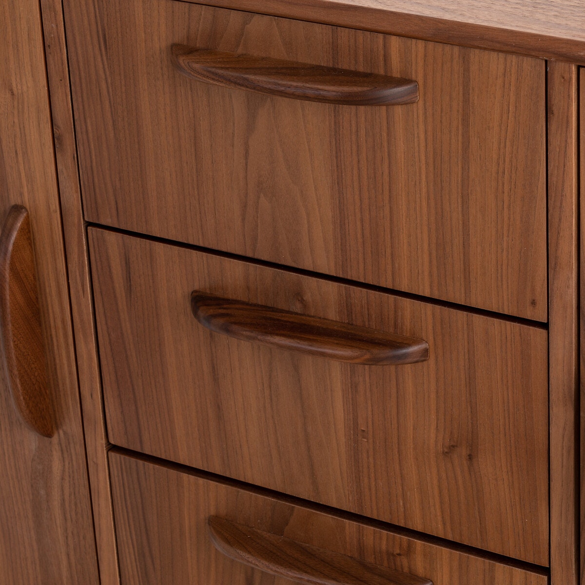 - Πόδια και λαβές από μασίφ ξύλο καρυδιάς με άχρωμο φινίρισμα πολυουρεθάνης