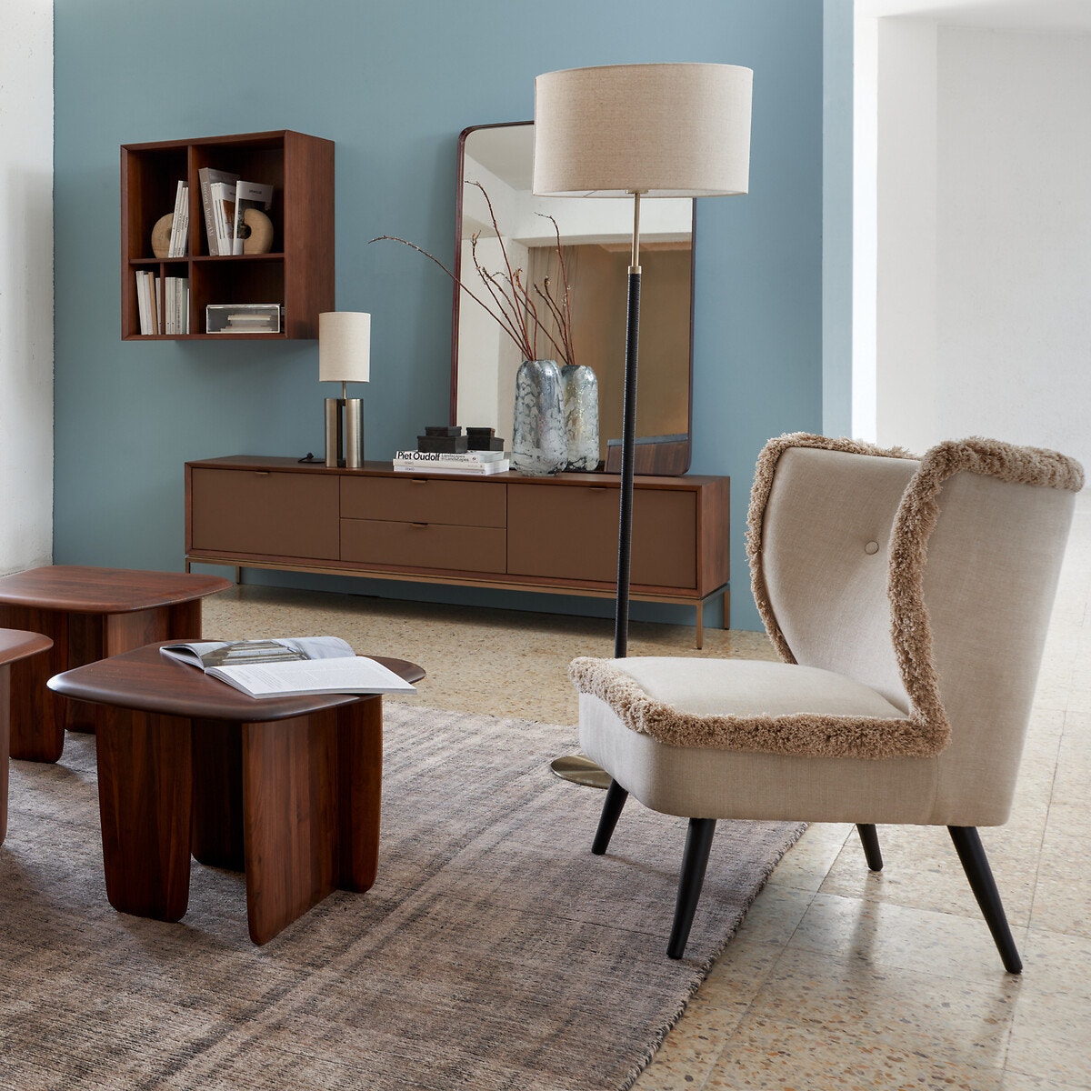 Έπιπλο TV από ξύλο καρυδιάς δέρμα, Delina - AM.PM