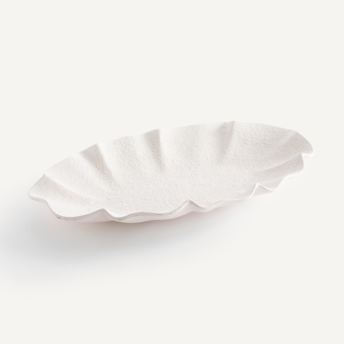 Εμπνευσμένη από τις ομορφιές του θαλάσσιου κόσμου, αυτό το γενναιόδωρο μπολ που θυμίζει κοχύλι, διαθέτει κεραμική επιφάνεια με τραχύ, ματ φινίρισμα που θυμίζει λευκή άμμο. Κατασκευασμένη στην Πορτογαλία, συνδυάζει την αυθεντική χειροτεχνική τεχνική με μια σύγχρονη λιτότητα.