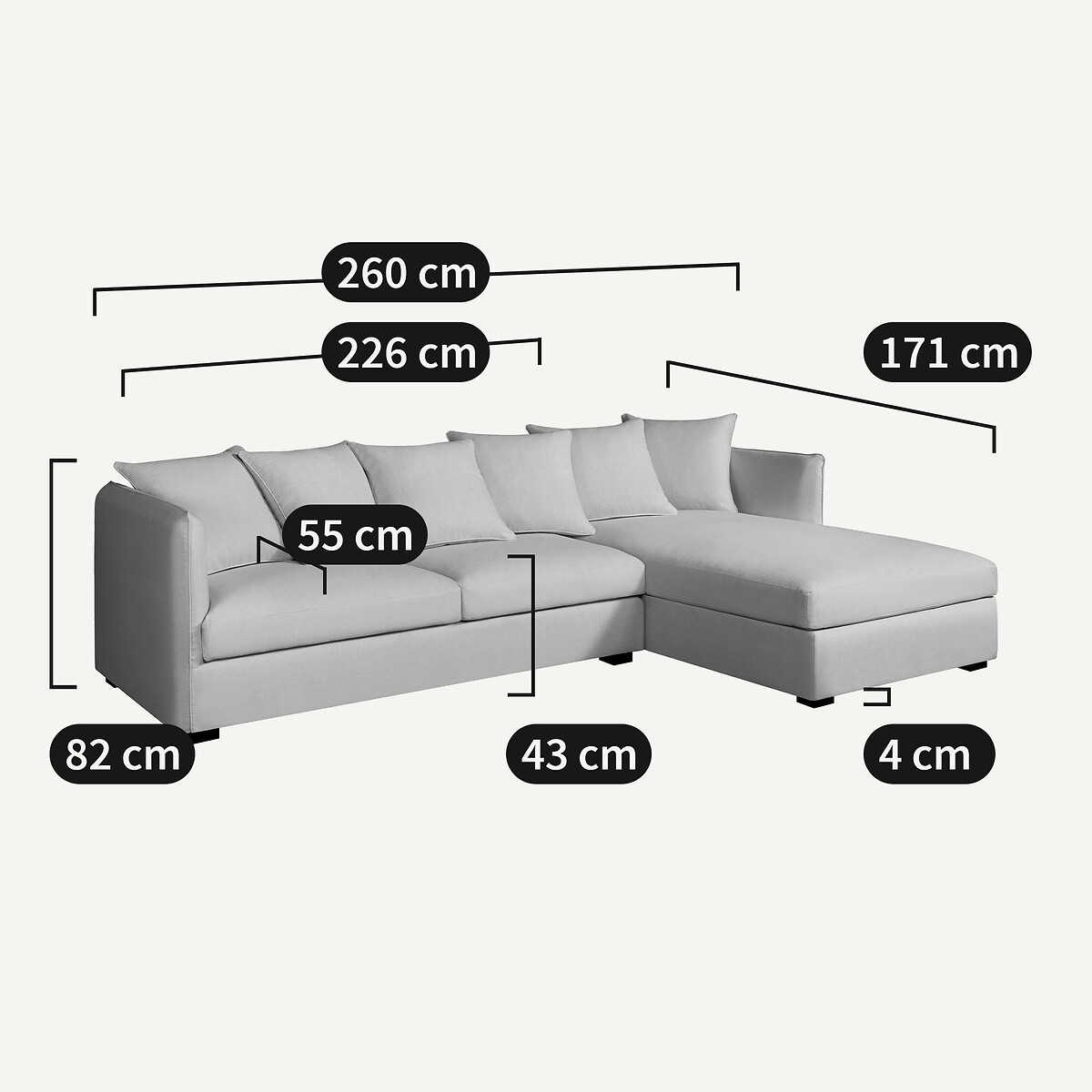 - Π260 x Υ82 x Β171 εκ. (με 6 μαξιλάρια πλάτης και 3 μαξιλάρια καθίσματος)