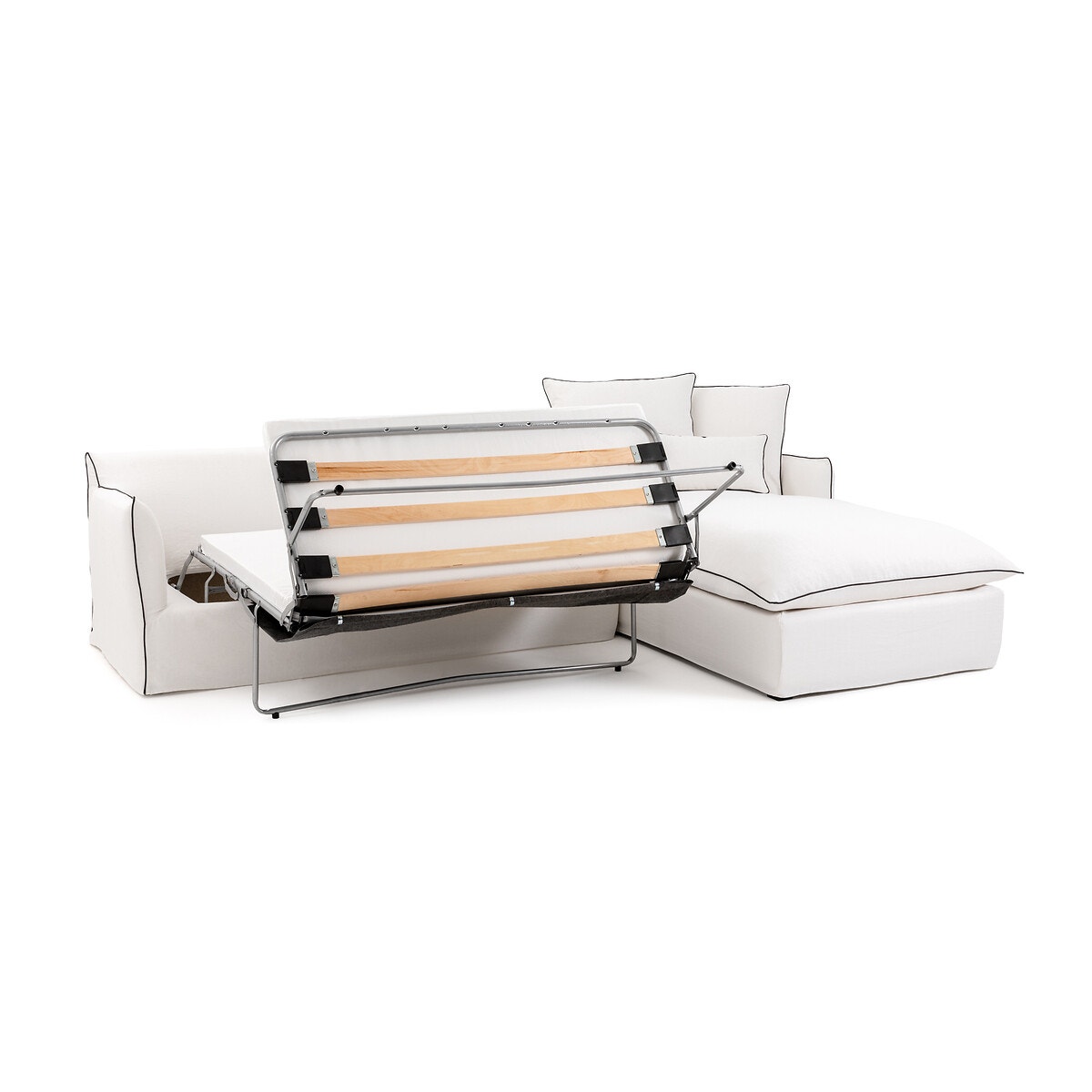 Πτυσσόμενος γωνιακός καναπές από χοντρό λινό ύφασμα με τεχνολογία Bultex, Odna