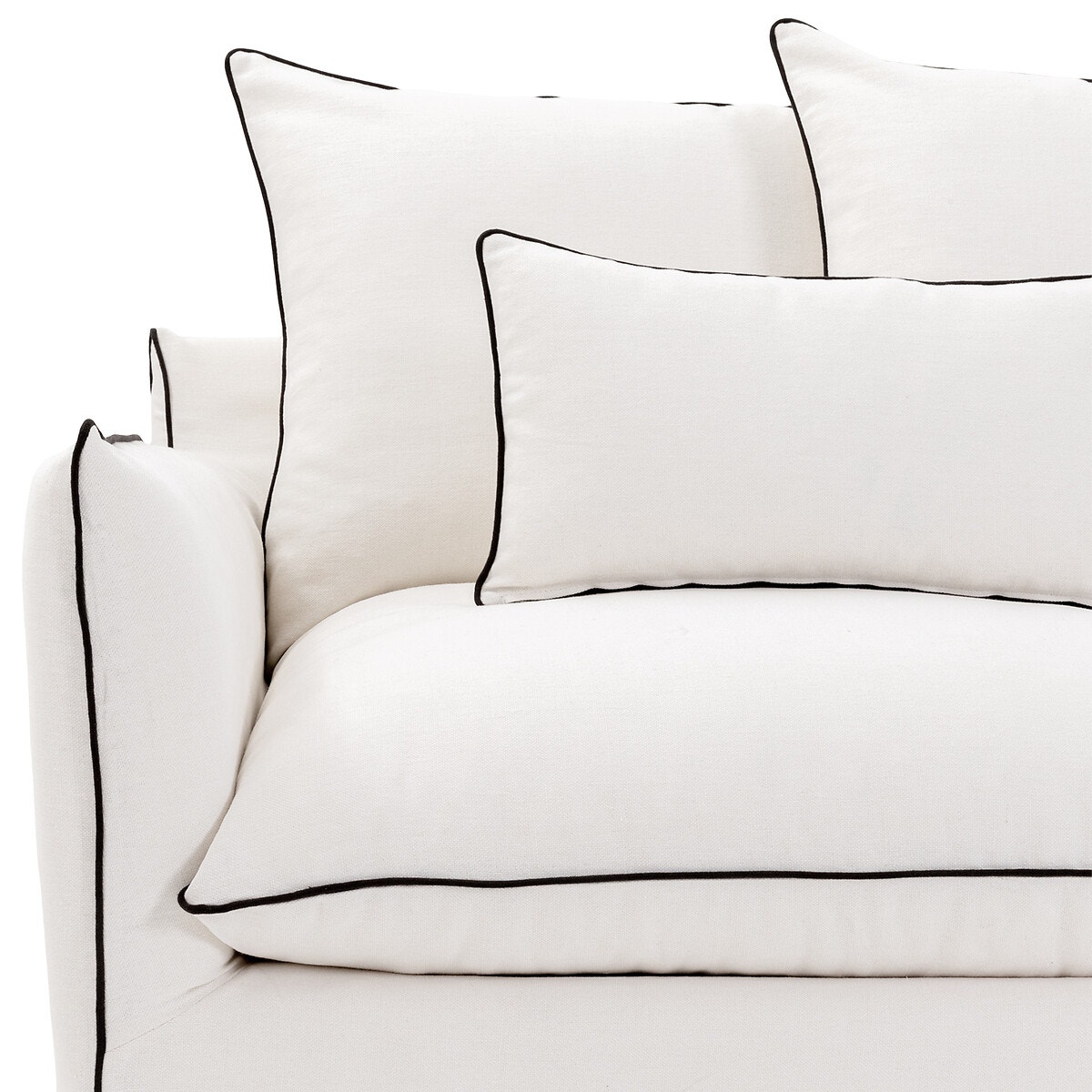 Γωνιακός καναπές με τεχνολογία Bultex από χοντρό λινό ύφασμα και μαύρο φιτίλι. Ένα απόλυτα άνετος και αναπαυτικός καναπές με πλήρως αφαιρούμενο κάλυμμα, από τον οποίο δεν θα θέλετε να σηκωθείτε! Κατασκευάζεται στη Γαλλία