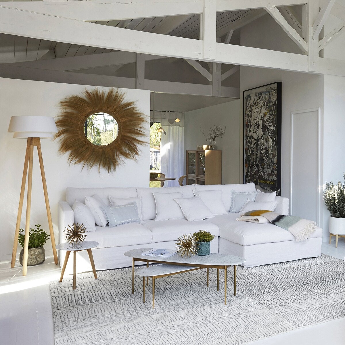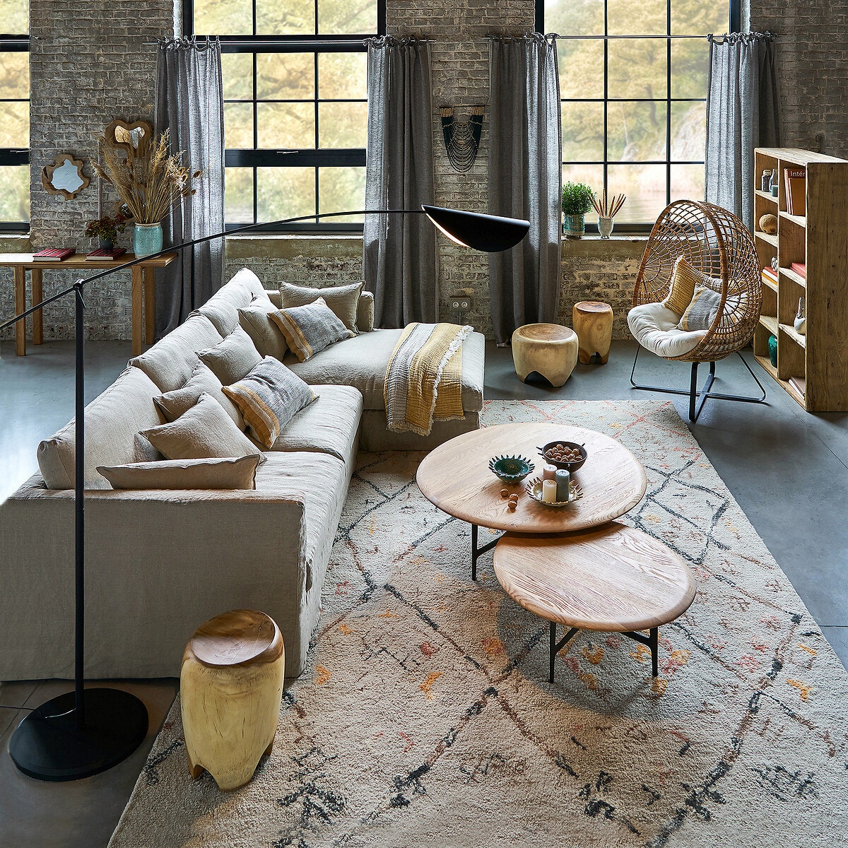 Καναπές σταθερής γωνίας από λινό γκοφρέ ύφασμα, Neo Kinkajou - AM.PM