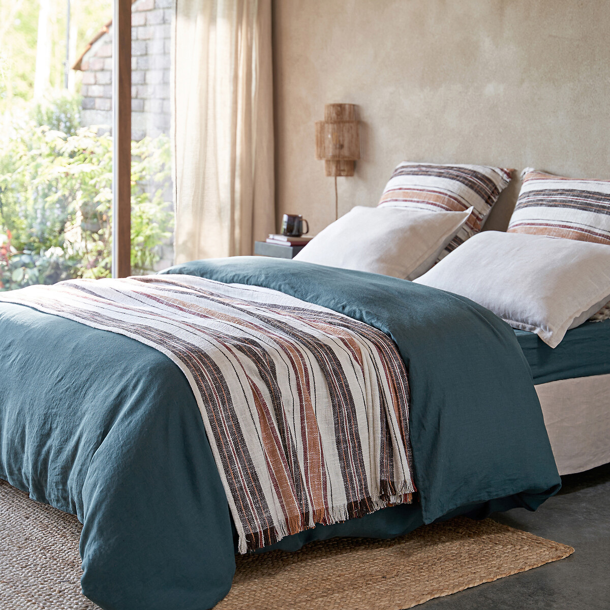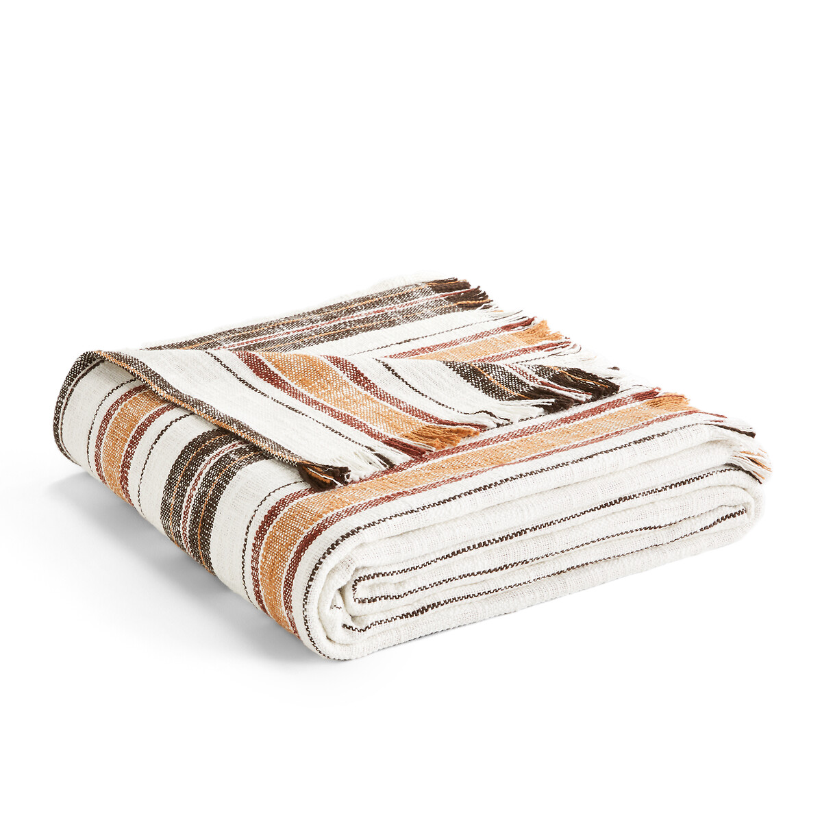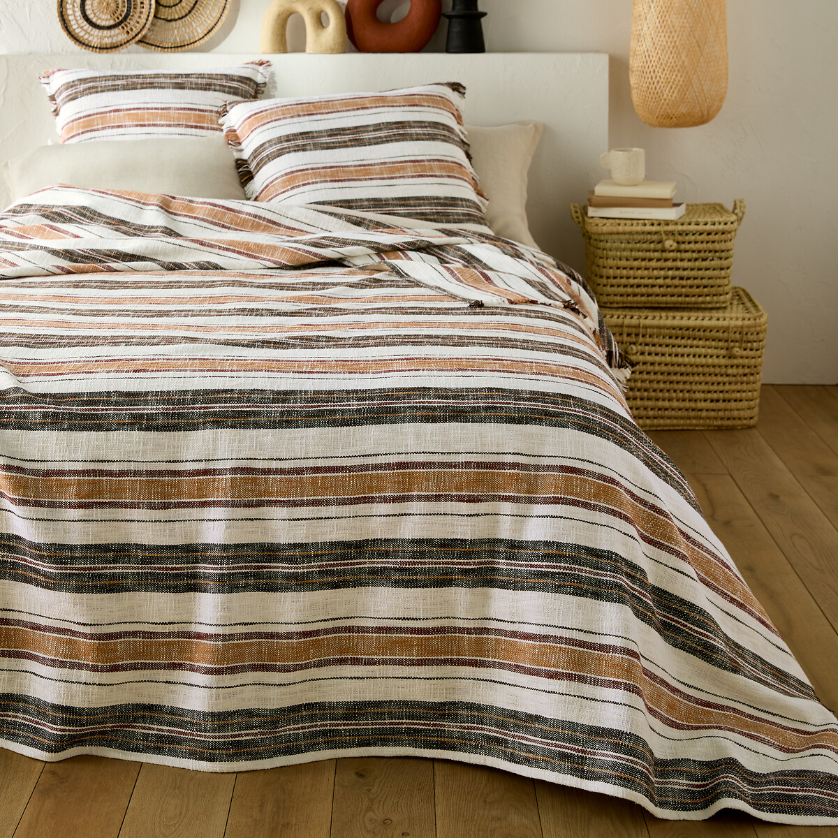 Ριγέ κάλυμμα κρεβατιού από βαμβάκι με ψαθωτή ύφανση, Imazai - La Redoute Interieurs