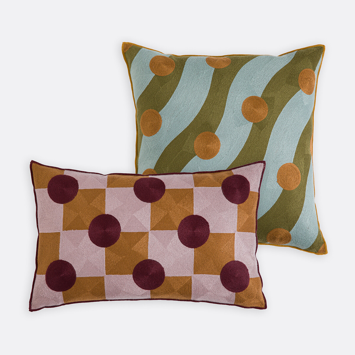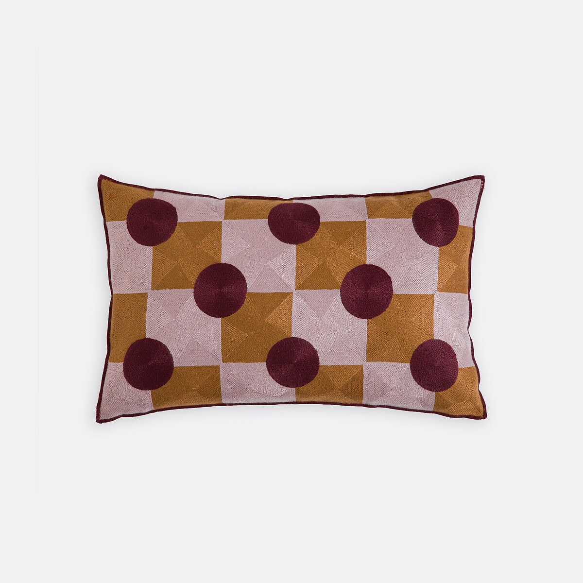 Τετράγωνα σε δύο αποχρώσεις και πουά... Η Touma συνδυάζει με χαρά τα γραφικά μοτίβα σε ζωηρά χρώματα. Μια μαξιλαροθήκη που φέρνει θετική ενέργεια και ζεστασιά στον χώρο σας. Δημιουργία των σχεδιαστών της La Redoute Interieurs.