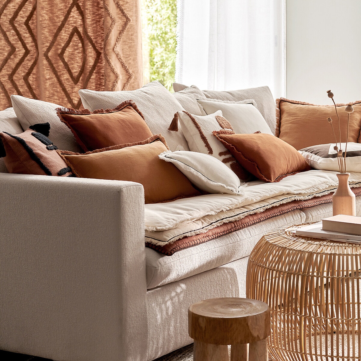 Γεωμετρικό μοτίβο, ζεστά χρώματα και απλικέ βελούδο... Η θήκη για μαξιλαράκι Nikki συνδυάζεται εύκολα με μονόχρωμα μαξιλάρια και δημιουργεί ζεστή και απαλή ατμόσφαιρα με έθνικ στυλ. Μια δημιουργία με την υπογραφή της La Redoute Intérieurs.
