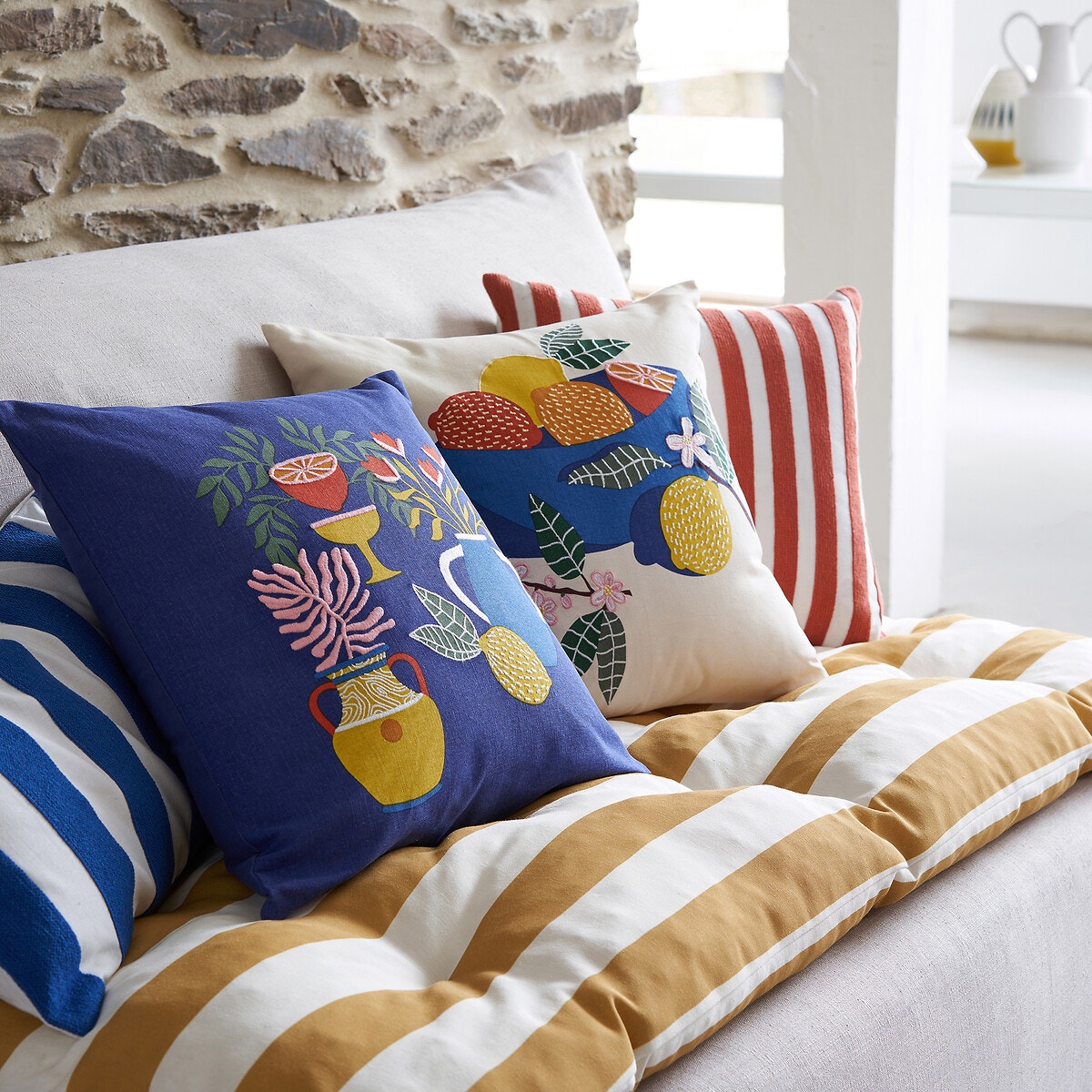 Λίγο κίτρινο για ζωντάνια... Το μοτίβο της δημιουργεί μια ατμόσφαιρα εξοχής στο καθιστικό σας. Αποκλειστικό σχέδιο La Redoute Interieurs.