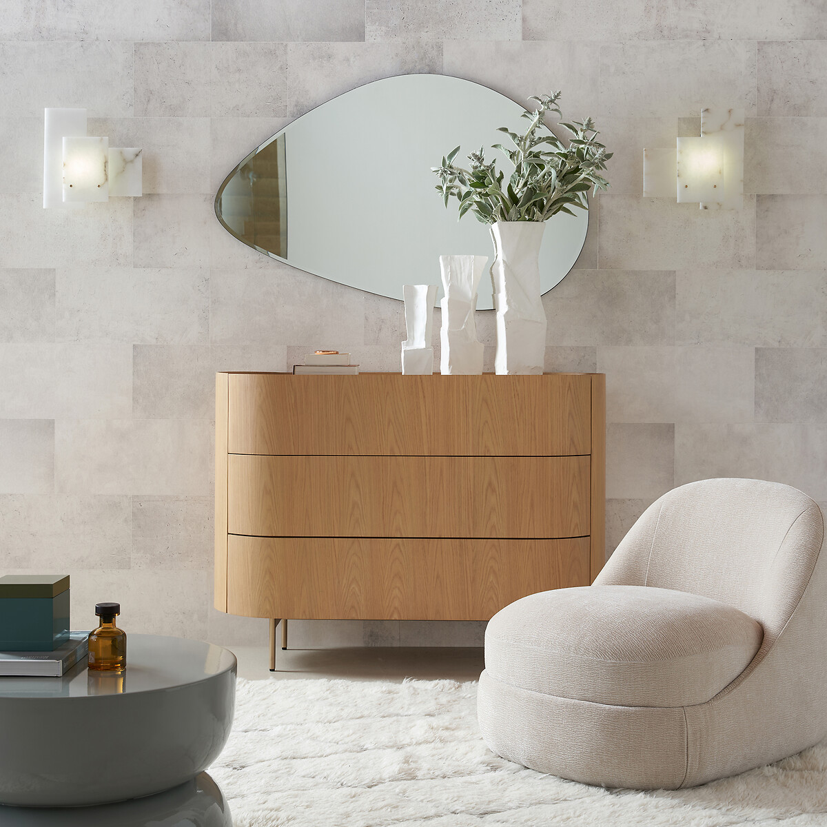 Ο καθρέφτης Cinta είναι ένα διακοσμητικό κομμάτι με ακανόνιστο σχήμα και καμπύλες. Το οβάλ σχήμα του θυμίζει σταγόνα κρεμασμένη στον τοίχο. Έχει μπιζουτέ περίμετρο και σκελετό από MDF με μαύρη λάκα.Μπορεί να τοποθετηθεί κάθετα ή οριζόντια. Μια αποκλειστική δημιουργία της AM.PM.