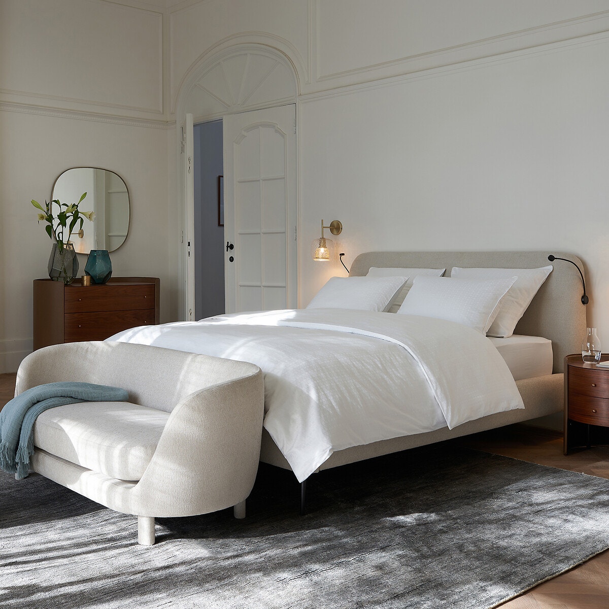 Σε απλή γραμμή με στρογγυλεμένες γωνίες. Σκελετός από μέταλλο με μπρονζέ παλαιωμένο ματ φινίρισμα.