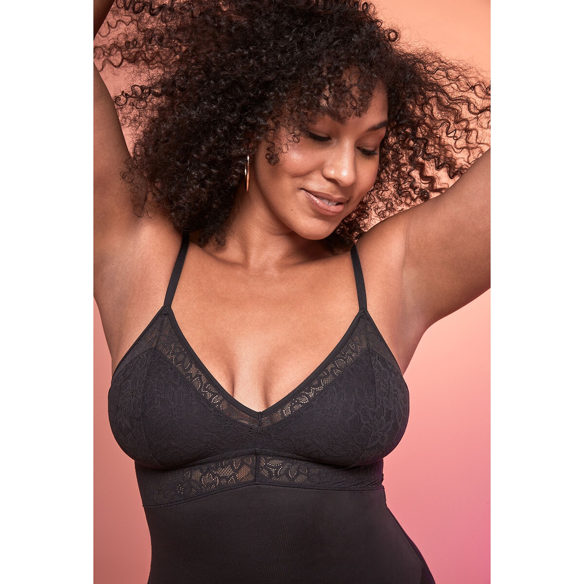 Κορμάκι που συσφίγγει χωρίς μπανέλες από μικροΐνες και θηλυκή δαντέλα. Φορέστε το κάθε μέρα για κομψή σιλουέτα, με δυνατότητα να δένετε και σταυρωτά τις τιράντες στην πλάτη για να προσαρμόζεται σε όλα τα ρούχα.