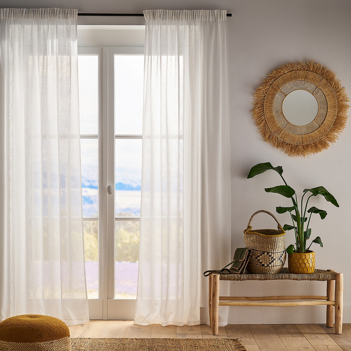 Ιδανική για να φιλτράρει το φως, η βουάλ κουρτίνα με όψη λινού Nyong αφήνει δημιουργεί μια μοναδική ατμόσφαιρα χάρη στο φυσικό φως που αφήνει να περνάει.