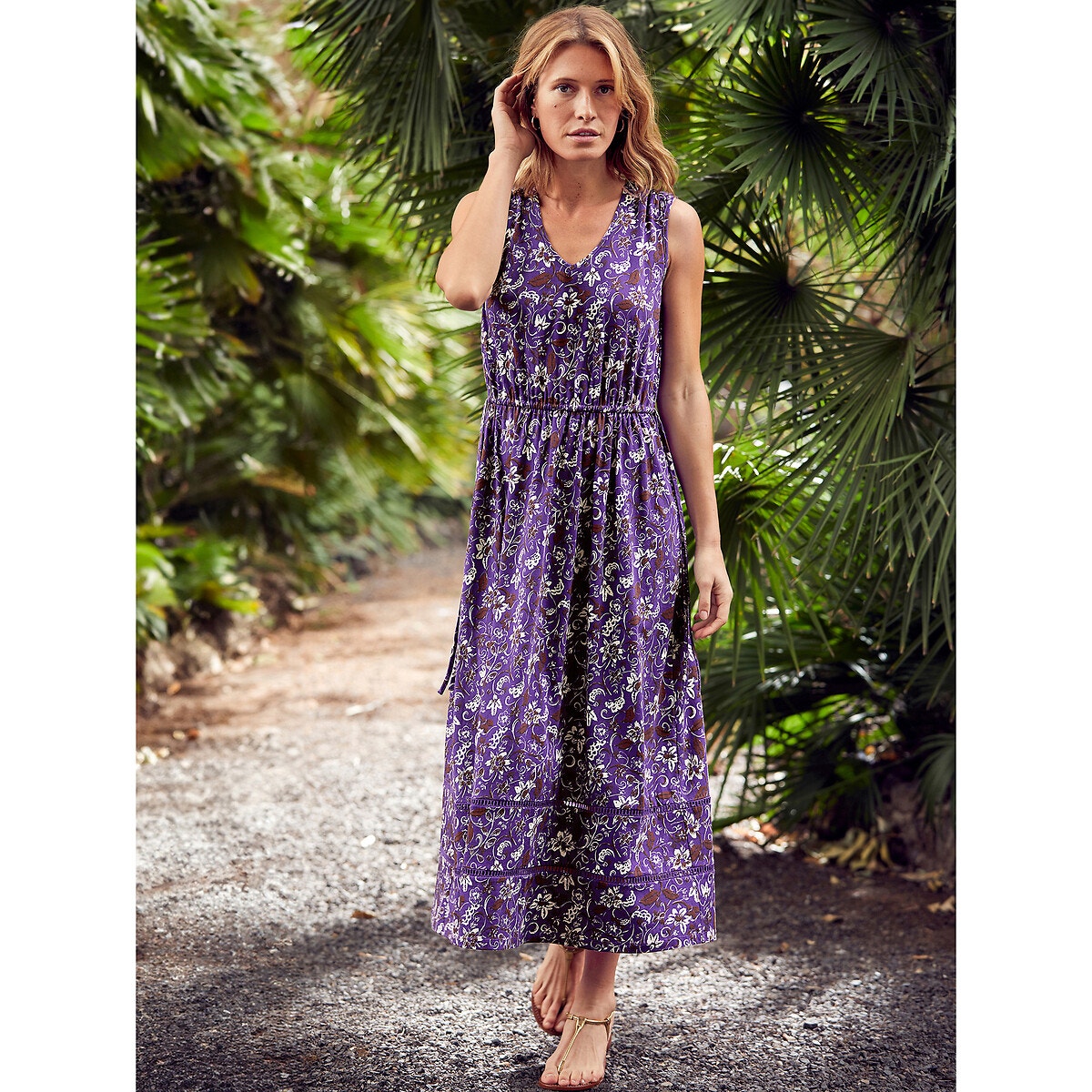 Εμπριμέ φόρεμα με χυτή εφαρμογή. Ένα πολύ μακρύ και μοντέρνο φόρεμα, ιδανικό για τις καλοκαιρινές σας διακοπές... Λαιμόκοψη και πλάτη σε σχήμα V. - Μικρό κορδόνι που δένει στην πλάτη. - Κορδόνι που δένει περαστό σε τούνελ στη μέση.