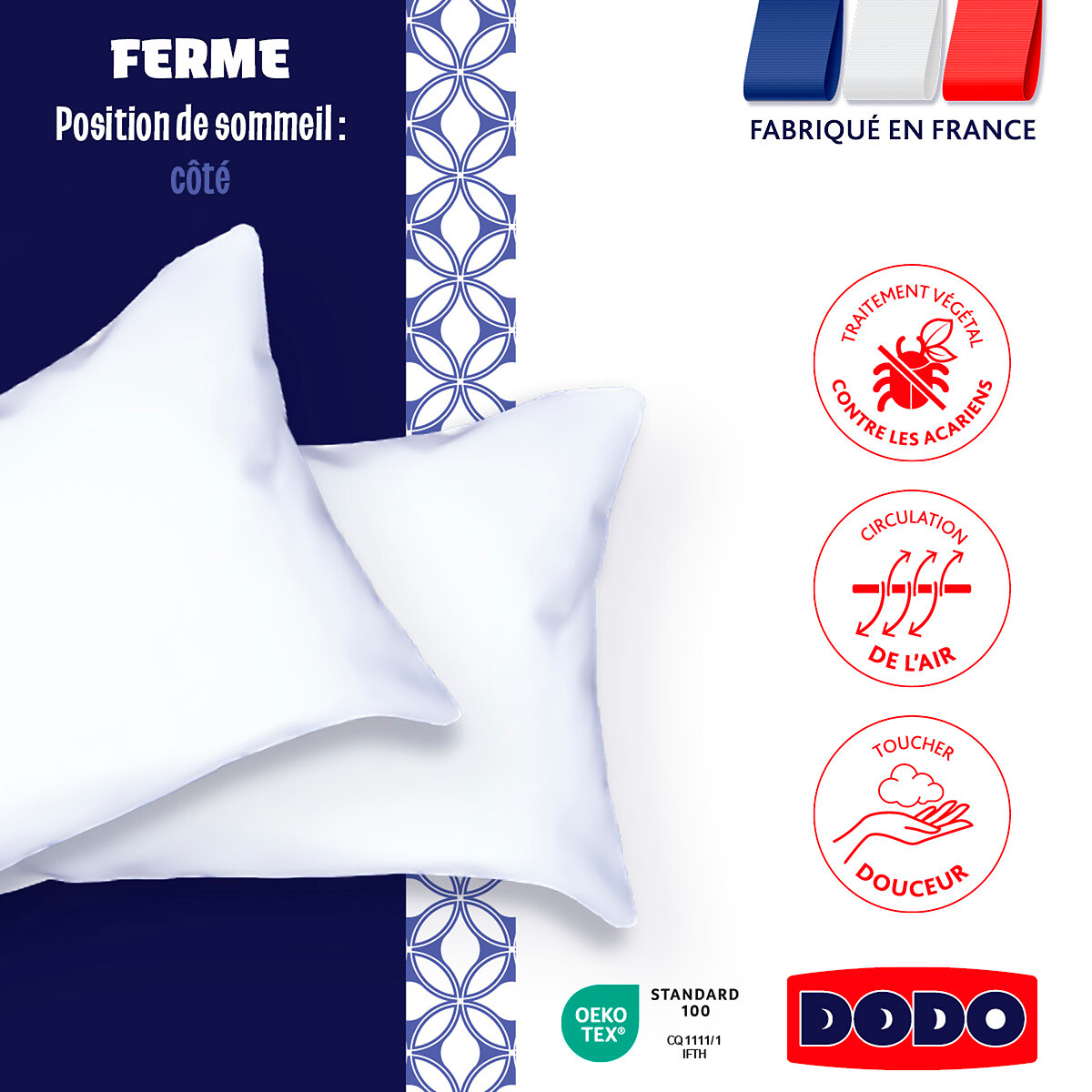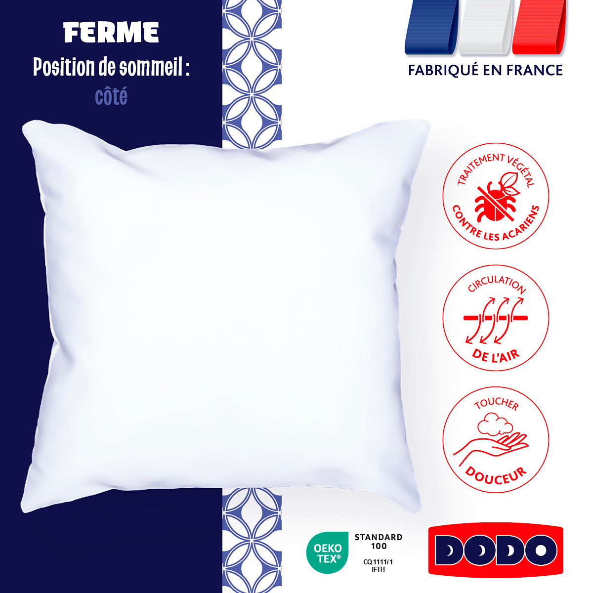 Dodo σκληρό μαξιλάρι με προστασία από ακάρεα σκόνης και εξαιρετικά άνετη στήριξη του κεφαλιού σας. Κάλυμμα από απαλές μικροϊνες με επεξεργασία κατά των ακάρεων. Ιδανικό για την καταπολέμηση αναπνευστικών αλλεργιών. Γέμισμα με πολυεστερικές ϊνες σιλικόνης που επιτρέπουν την καλύτερη κυκλοφορία του αέρα και μειώνουν τη συσσώρευση υγρασίας. Πλένεται στο πλυντήριο στους 60°C.