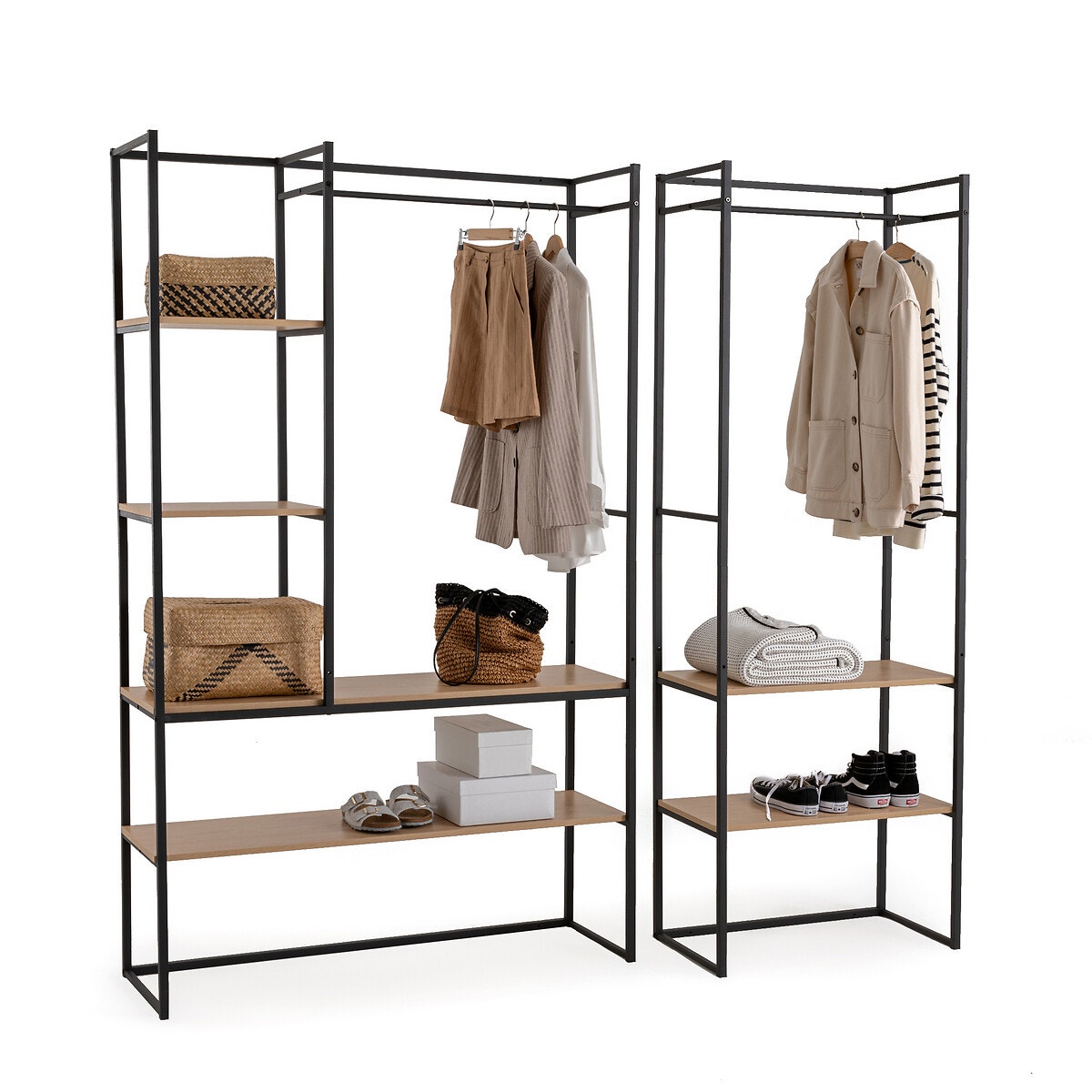 Δώστε βιομηχανικό στυλ στη διακόσμηση του χώρου σας. Ιδανική για μικρούς χώρους, η σειρά Farla δίνει έμφαση στο ύψος. Αυτή η μονάδα προτείνει 4 πιθανούς συνδυασμούς με τη βέργα και τα 4 ράφια της που αλλάζουν θέση.