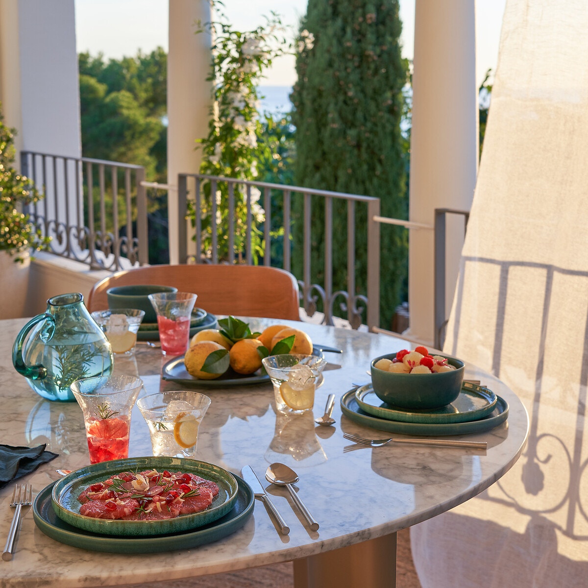 Κεραμικά μπολ σε τιρκουάζ χρώμα που φέρνουν τη νοσταλγία ενός μεσογειακού τοπίου.Το υλικό και η ελαφρώς ακανόνιστη περίμετρός τους αναδεικνύουν τη χειροποίητη κατασκευή τους. Φτιαγμένα στην Πορτογαλία, κάθε κομμάτι είναι μοναδικό.