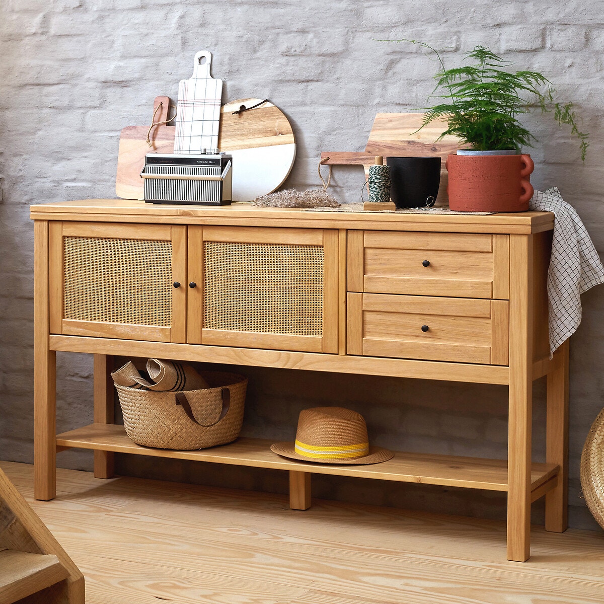Μπουφές από μασίφ ξύλο πεύκου και ψάθα, Gabin - La Redoute Interieurs