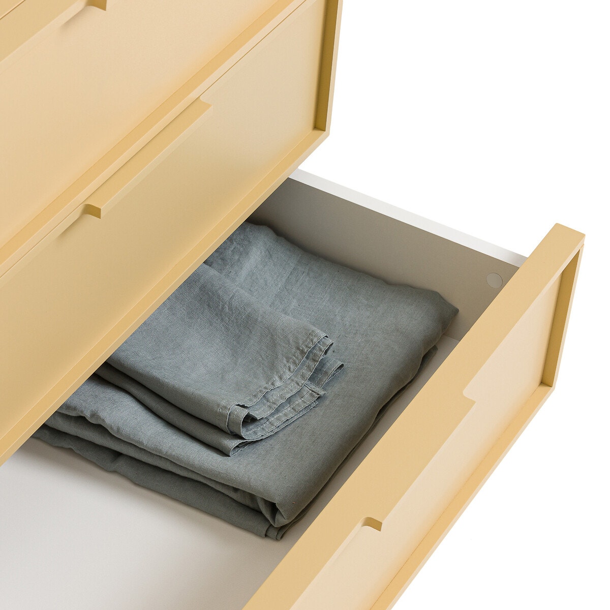 Τολμηρό χρώμα για τον ψηλό μπουφέ Vati. Κομψό έπιπλο αποθήκευσης, με αέρινο ντιζάιν που συνδυάζει αισθητική και πρακτικότητα. Ένας ευρύχωρος μπουφές με ρυθμιζόμενο ράφι και 3 μεγάλα συρτάρια. Κατασκευασμένος στην Ευρώπη, είναι μια δημιουργία των σχεδιαστών της La Redoute Interieurs.