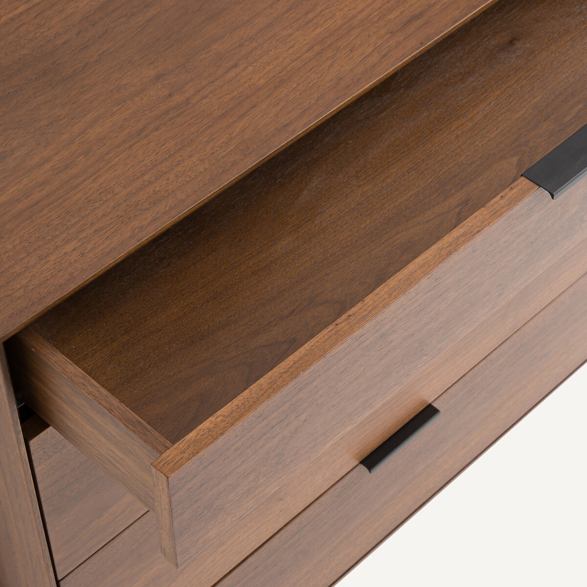 Λιτό, κομψό, λειτουργικό. Αυτό το έπιπλο γκαρνταρόμπας από μασίφ ξύλο καρυδιάς και MDF με καπλαμά ξύλου καρυδιάς FSC® έχει 4 συρτάρια και είναι σχεδιασμένο για να χρησιμοποιείται μεμονωμένα ή μαζί με άλλες μονάδες της συλλογής.Συνδυάζει την απλότητα του ξύλου με μοντέρνες γραμμές. Δημιουργήστε τη σύνθεση που εσείς θέλετε. Μια συλλογή με την υπογραφή της AM.PM.