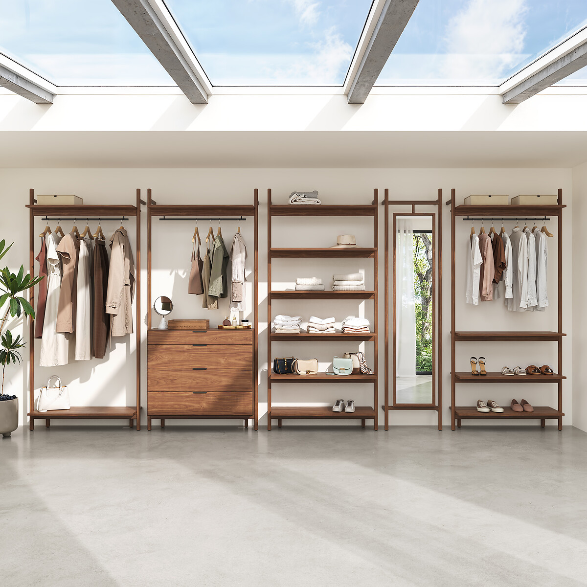 Έπιπλο γκαρνταρόμπας από ξύλο καρυδιάς με 6 ράφια, Rory