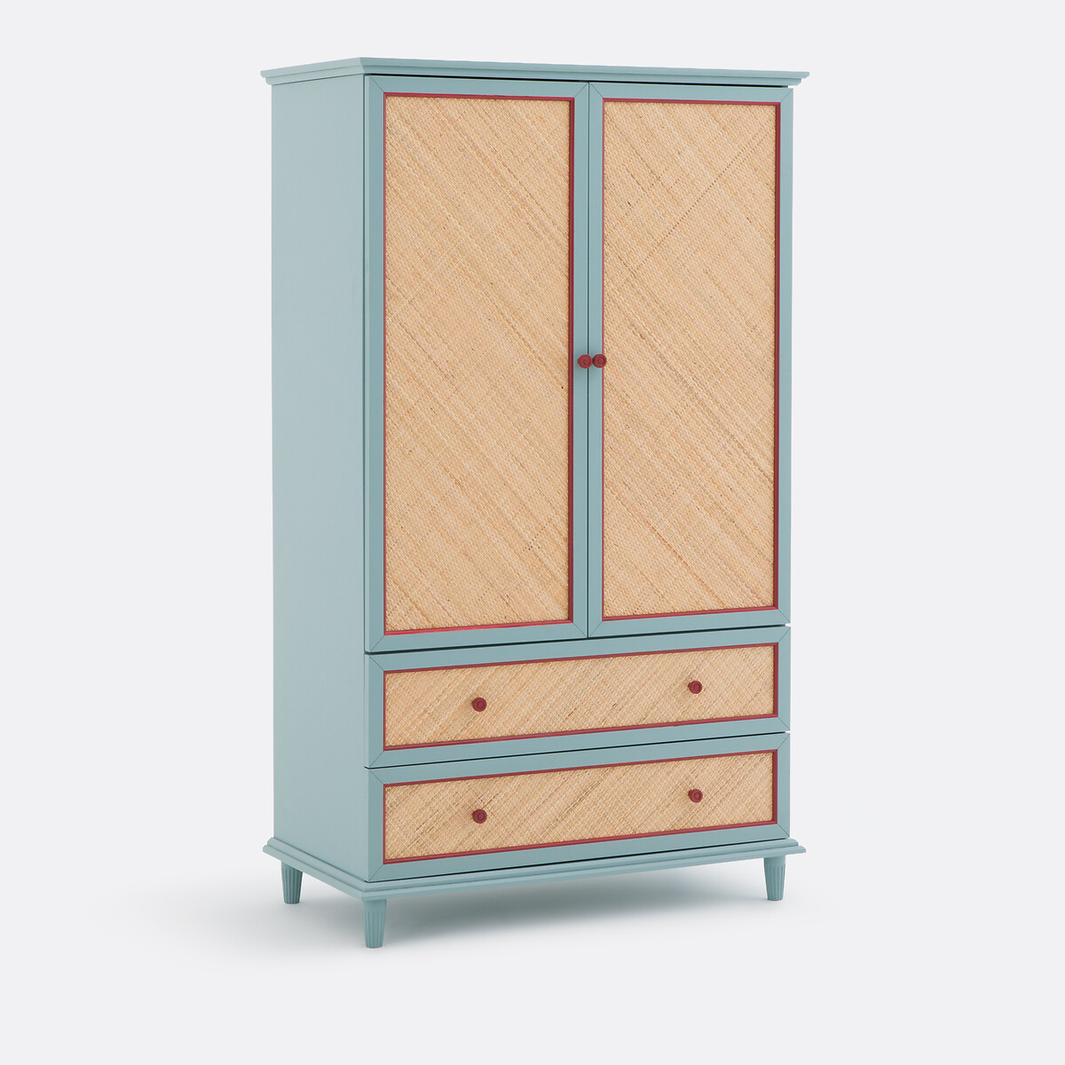 Ρετρό έμπνευση και ατμόσφαιρα εξοχικού σπιτιού. Η ντουλάπα Sidore διαθέτει τη γοητεία ενός ανανεωμένου vintage επίπλου: ξύλο βαμμένο σε απαλή παστέλ απόχρωση με πόρτες και πρόσοψη συρταριών από πλεκτό ρατάν, τονισμένες με ένα πλαίσιο σε αντίθεση. Ιδανική για να δημιουργήσετε μια νεο-ρομαντική ατμόσφαιρα στο υπνοδωμάτιο.
