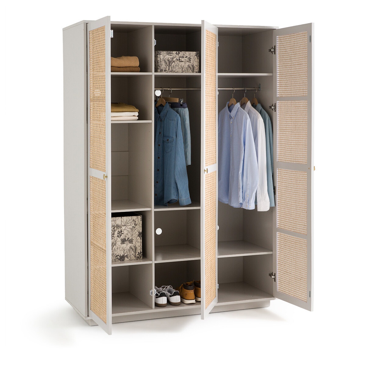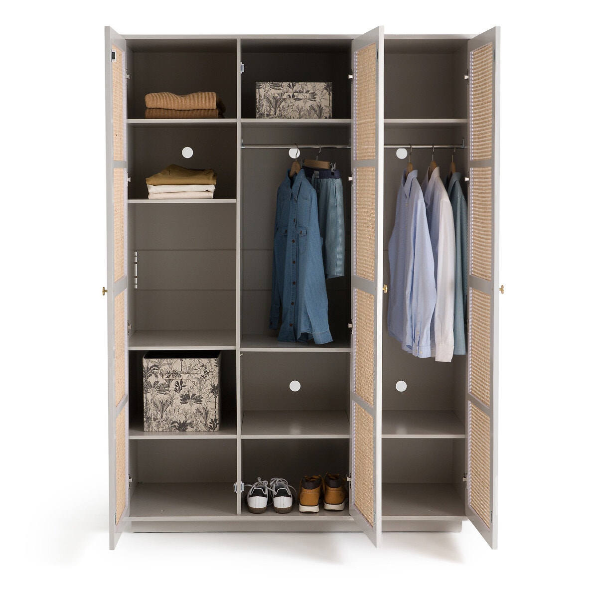 Μποέμ στυλ και ίσιες γραμμές: η ντουλάπα Paola με 3 πόρτες συνδυάζει ξύλο MDF, μασίφ ξύλο πεύκου και ψάθα από ρατάν. Χάρη στην κρεμάστρα και τα ράφια της, χωρά όλα τα ρούχα και τα αξεσουάρ σας.Ένα κομψό και λειτουργικό έπιπλο για το υπνοδωμάτιο. Μια δημιουργία της La Redoute Intérieurs.