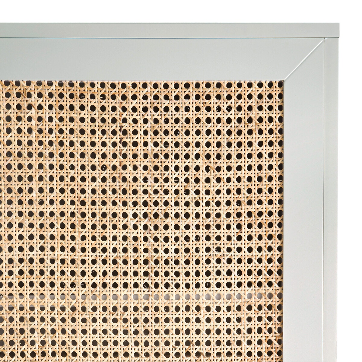 - Πόρτες από MDF και μασίφ λακαρισμένο ξύλο και ψάθα από ρατάν σε φυσική απόχρωση