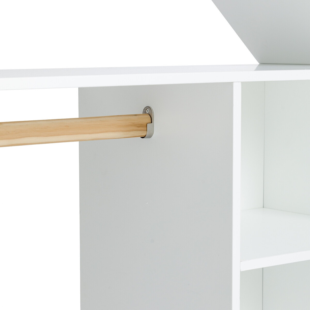 Kalie, μια παιδική ντουλάπα με πολύ διακοσμητικό ντιζάιν σε σχήμα σπιτιού. Αποτελείται από μια στήλη με ράφια και έναν χώρο για κρεμάστρες και συνδυάζει λειτουργικότητα και ντιζάιν. Ένα προϊόν με την υπογραφή της La Redoute Interieurs.