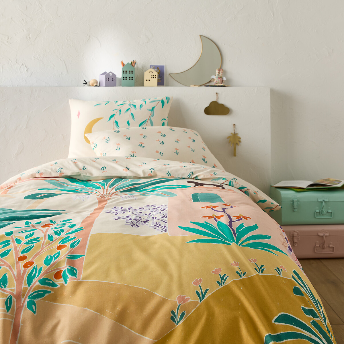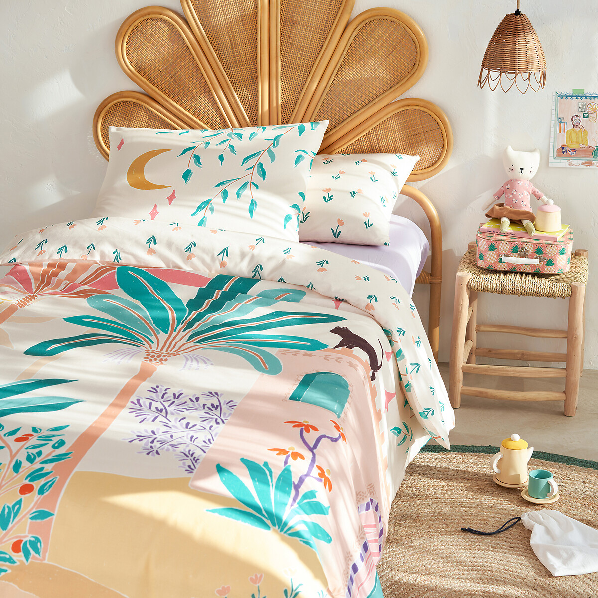 Η παπλωματοθήκη Anis έχει όμορφα μοτίβα στη μία πλευρά, που χαρακτηρίζονται από την ποιότητα της ψηφιακής εκτύπωσης. Μοτίβα με φυτά και φοίνικες στην πίσω πλευρά.Από 100% βαμβάκι, είναι μια δημιουργία με την υπογραφή της La Redoute Intérieurs.