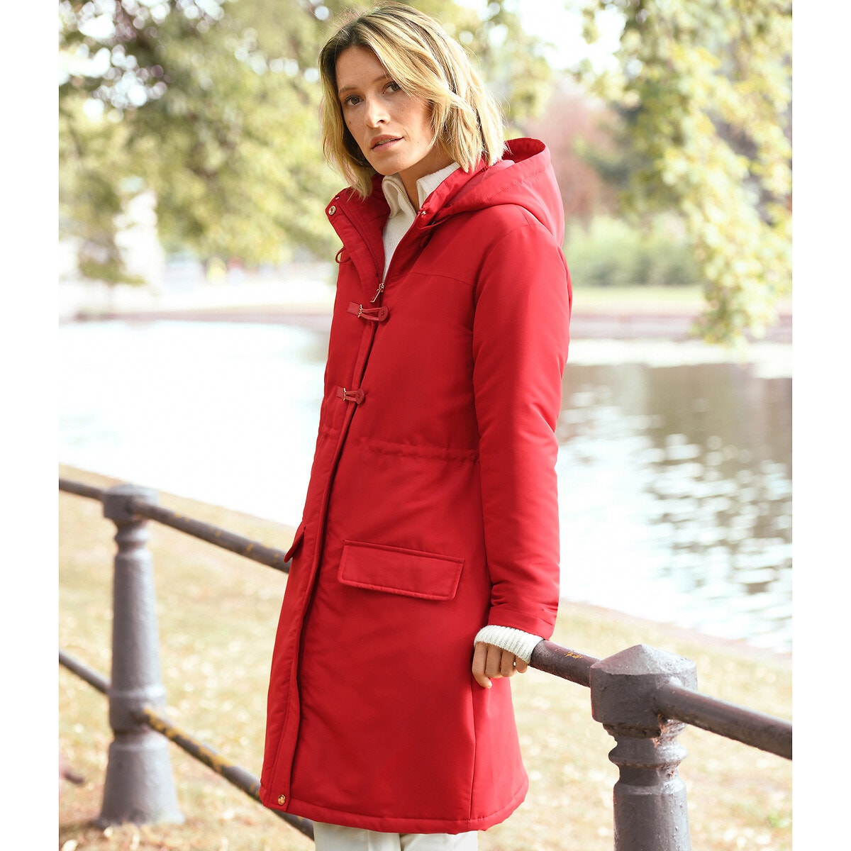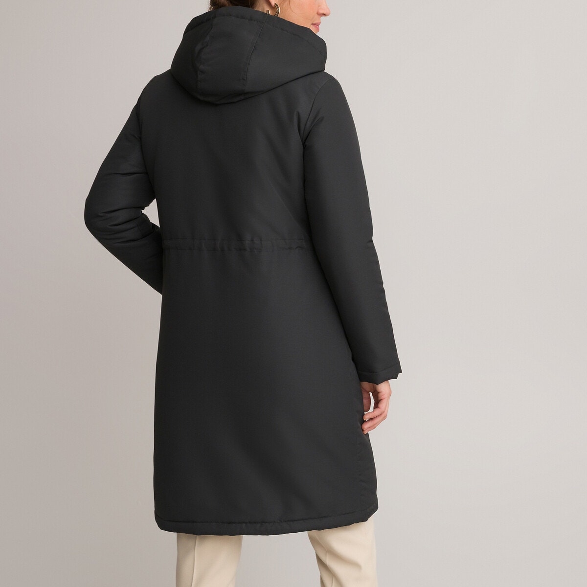 Αυτό το παρκά με κουκούλα είναι πολύ ζεστό και απολύτως απαραίτητο το χειμώνα. Όρθιος γιακάς. Αφαιρούμενη κουκούλα. Μακριά μανίκια. Πλακέ τσέπες με καπάκι. Περαστό κορδόνι που σφίγγει στη βάση. Κλείνει με φερμουάρ κάτω από πατιλέτα με κουμπιά τύπου μοντγκόμερι.