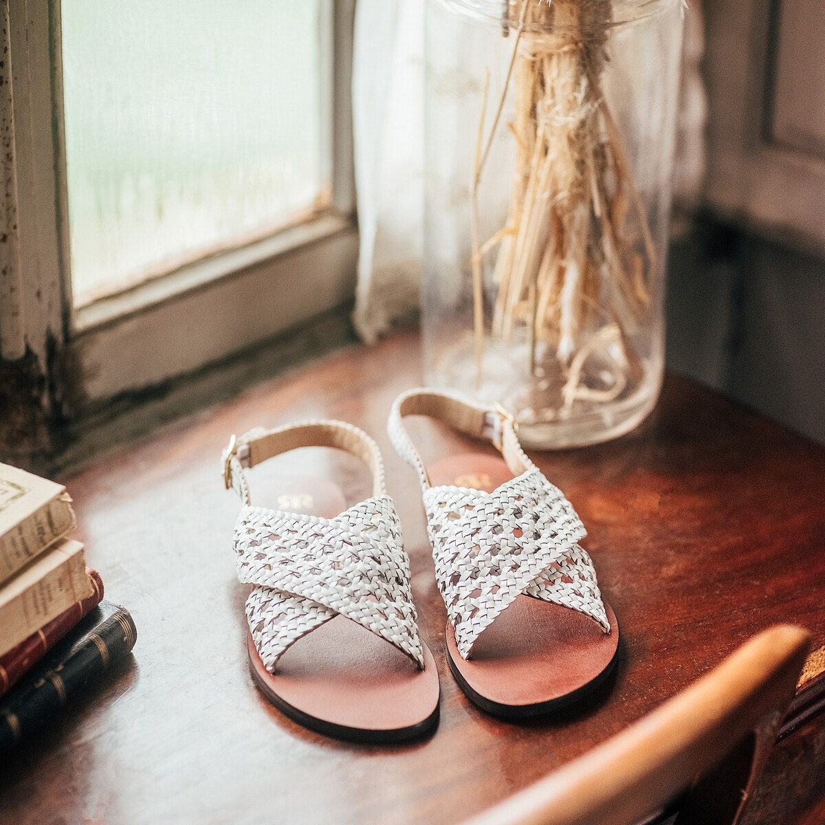 Δερμάτινα φλατ πέδιλα με κρουαζέ σχέδιο - La Redoute Collections