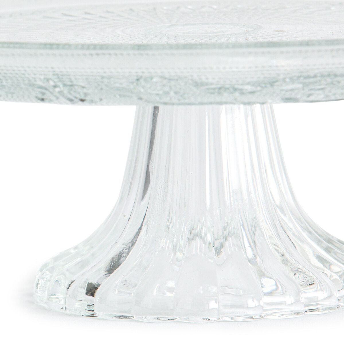 Για να σερβίρετε με κομψότητα και να αναδείξετε τάρτες, γλυκά και κεράσματα... Τουρτιέρα με πόδι από γυαλί με ανάγλυφο σχέδιο.