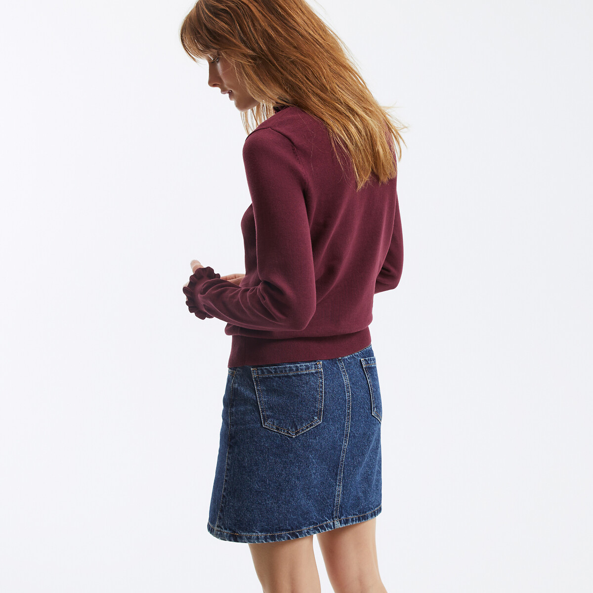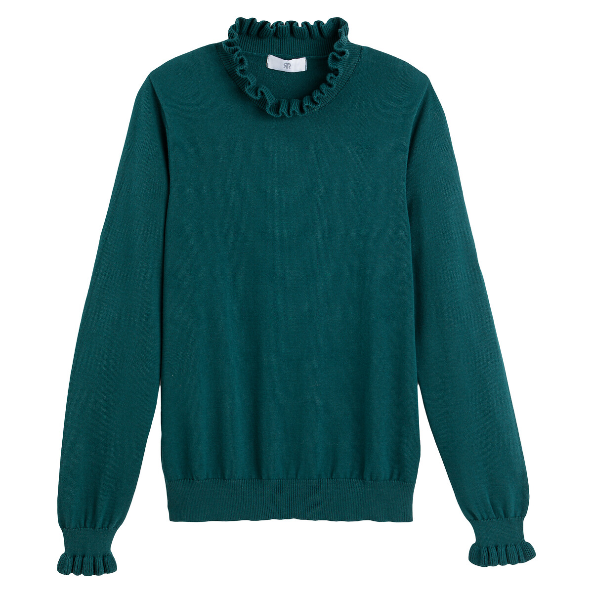 Μακρυμάνικο πλεκτό με όρθιο λαιμό και βολάν - La Redoute Collections