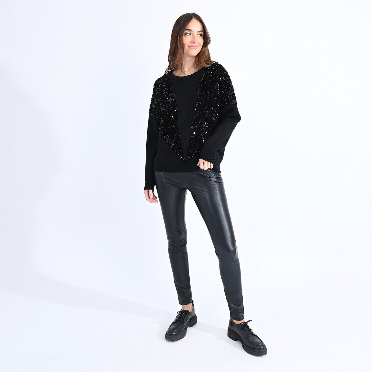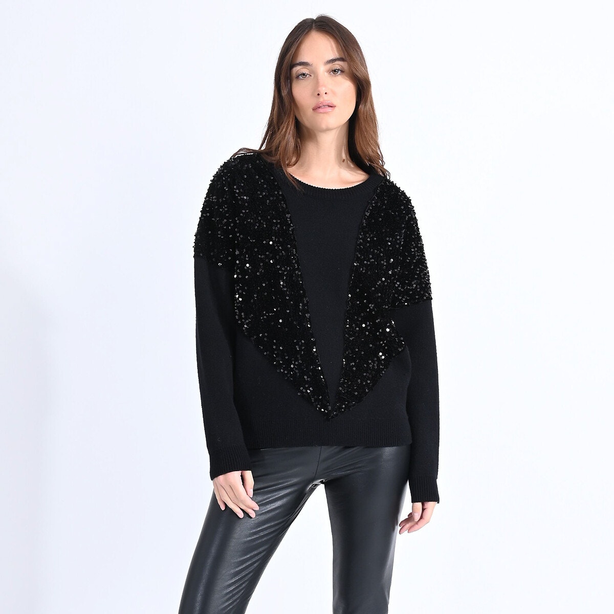 Πλεκτό με στρογγυλή λαιμόκοψη και παγιέτες