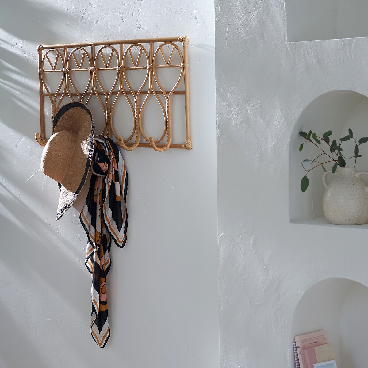 Από ρατάν, η κρεμάστρα τοίχου Malu δίνει γοητεία και μποέμ στυλ στη διακόσμηση. Με 5 γάντζους για να κρεμάτε σακάκια, μαντήλια, τσάντες και καπέλα στο υπνοδωμάτιο.