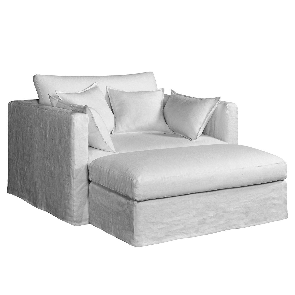 Υποπόδιο Neo Kinkajou από λινό γκοφρέ ύφασμα. Γαλλικής κατασκευής. Με πολύ βαθύ κάθισμα, μοντέρνα γραμμή και εξαιρετική άνεση.