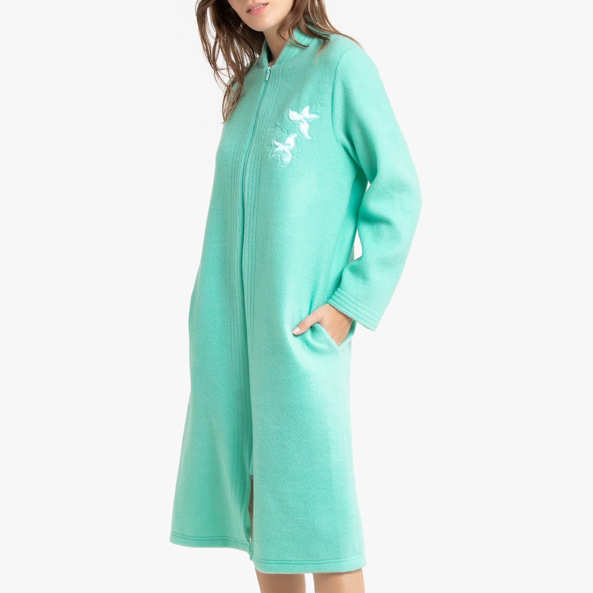 Χαλαρώστε με στυλ με αυτή τη ζεστή ρόμπα! Από μαλακό και ζεστό ύφασμα με μικρό κεντημένο μοτίβο στο στήθος. Κλείνει με φερμουάρ. 2 τσέπες στο πλάι. Μήκος πίσω από τον ώμο: 110 εκ.