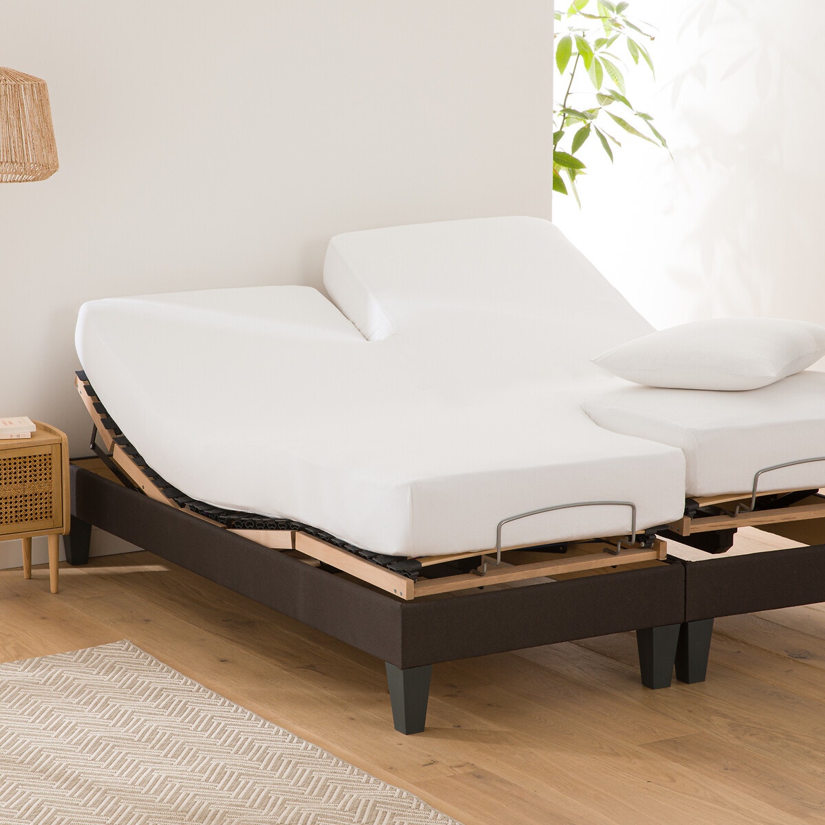 Σεντόνι με λάστιχο για διπλό κρεβάτι με ξεχωριστά στρώματα, ενωμένα στο κέντρο, ανεξάρτητα στο κεφάλι και στα πόδια. Για απόλυτη άνεση, είναι ενωμένο στο κέντρο, χωρίς ραφή.