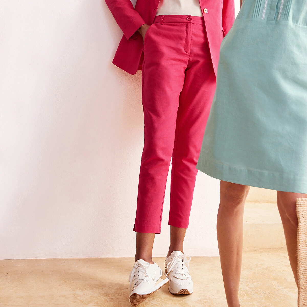 Ίσιο παντελόνι. Από βαμβάκι και λινό ύφασμα για απαλότητα και όμορφη εφαρμογή. Μήκος 7/8. Με φερμουάρ και κουμπί.