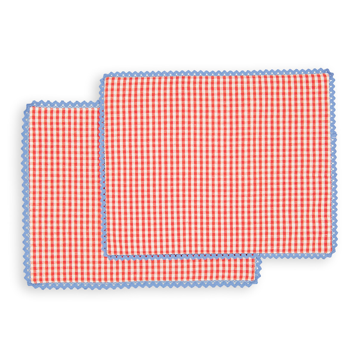Μοτίβο με μικρά καρό και ζιγκ-ζαγκ τελείωμα. Το σετ με 2 σουπλά Trattoria παραπέμπει στα τραπέζια των εστιατορίων της δεκαετίας του 50. Μια δημιουργία με την υπογραφή της La Redoute Interieurs.