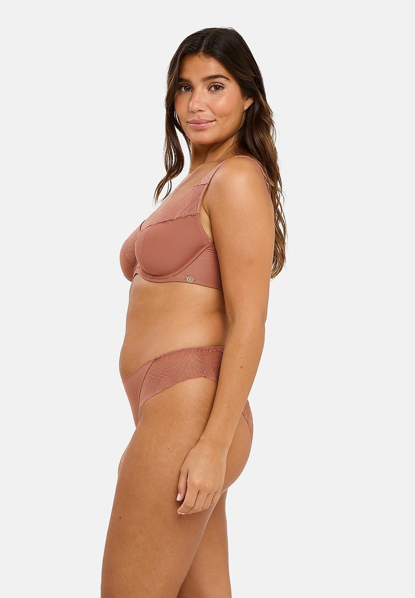 Αυτό το σουτιέν με βαθύ ντεκοτλέ είναι ο ιδανικός συνδυασμός της απαλότητας της μικροϊνας και της μοντέρνας, γραφικής δαντέλας, προσφέροντας κομψή σιλουέτα για καθημερινή χρήση. Τα cups από εξαιρετικά απαλή μικροϊνa, πλήρως επενδεδυμένα με τούλι, προσφέρουν τέλεια στήριξη.