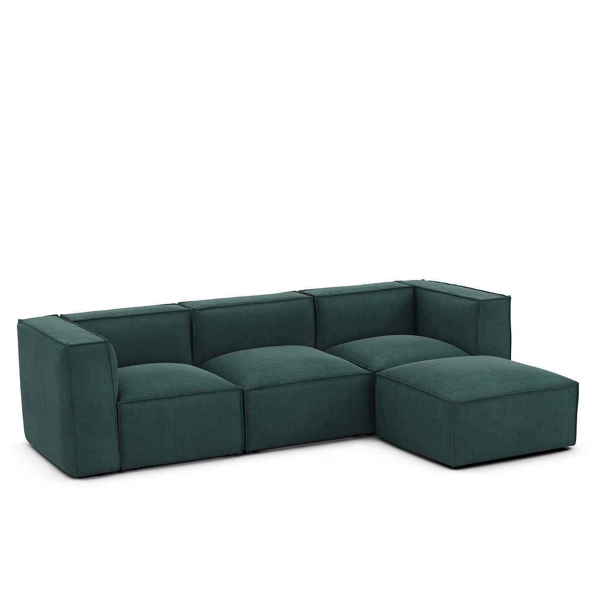 Σύνθεση καναπέ 3 θέσεων και 1 ταμπουρέ με ταπετσαρία από βελούδο κοτλέ, Seven